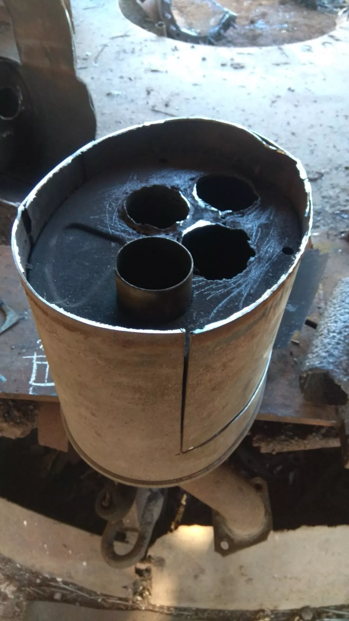 В последнее время выхлоп начал рычать а 3-4 дня назад там что-то внутри начало болтаться и кум предложил его в СРЗ вскрыть и посмотреть)когда вскрыли поняли что смотреть там нечего в него уже предыдущие владельцы лазили и все вырезали ни перегородок ничего там нет кроме одиноко-валяющийся старой ржавой трубы, мастер который вскрыл сказал что может его восстановить до первозданного состояния)посмотрим что получится)