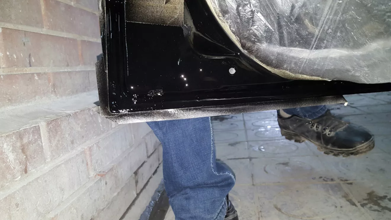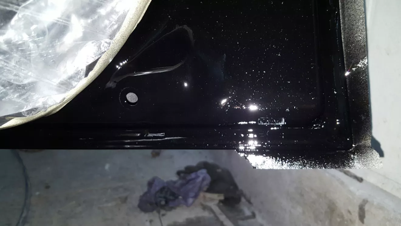 На фото может не видно но получилось отлично)сначало погрунтовали, нанесли герметик для швов и открасили)