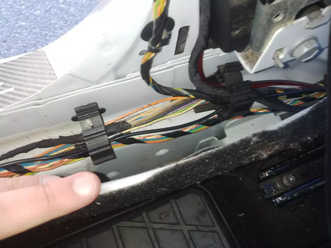 Всі коси стягнув в задню ліву частину і там в ніші заховав блок, підключив все до проводу заднього ходу і масса