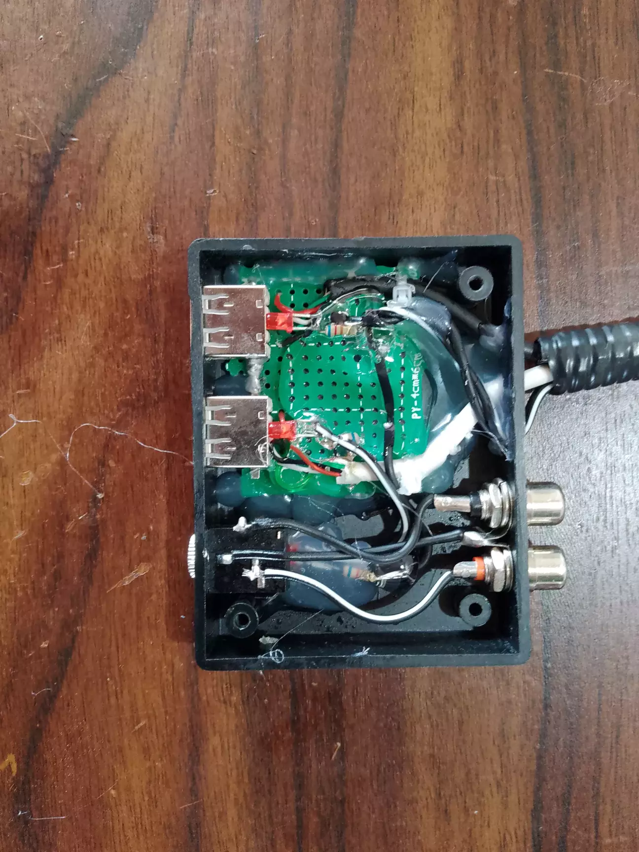 Мені не подобалось що в бардачку стирчать два usb для флешок, тому в радіо магазині купив корпус Z71U пару світлодіодів, макетку, резистор на 570 ом (наче ),aux гніздо, usb гнізда, і два вихіда на тюльпани . Спаяв все до купи і вийшов Франкенштейн
