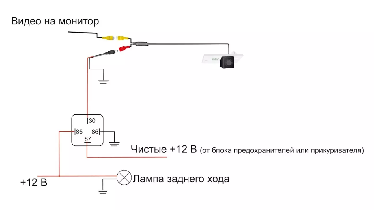 ( 87 клему беремо від плафона підсвітка багажиника, 85 від сигналу заднього ходу)