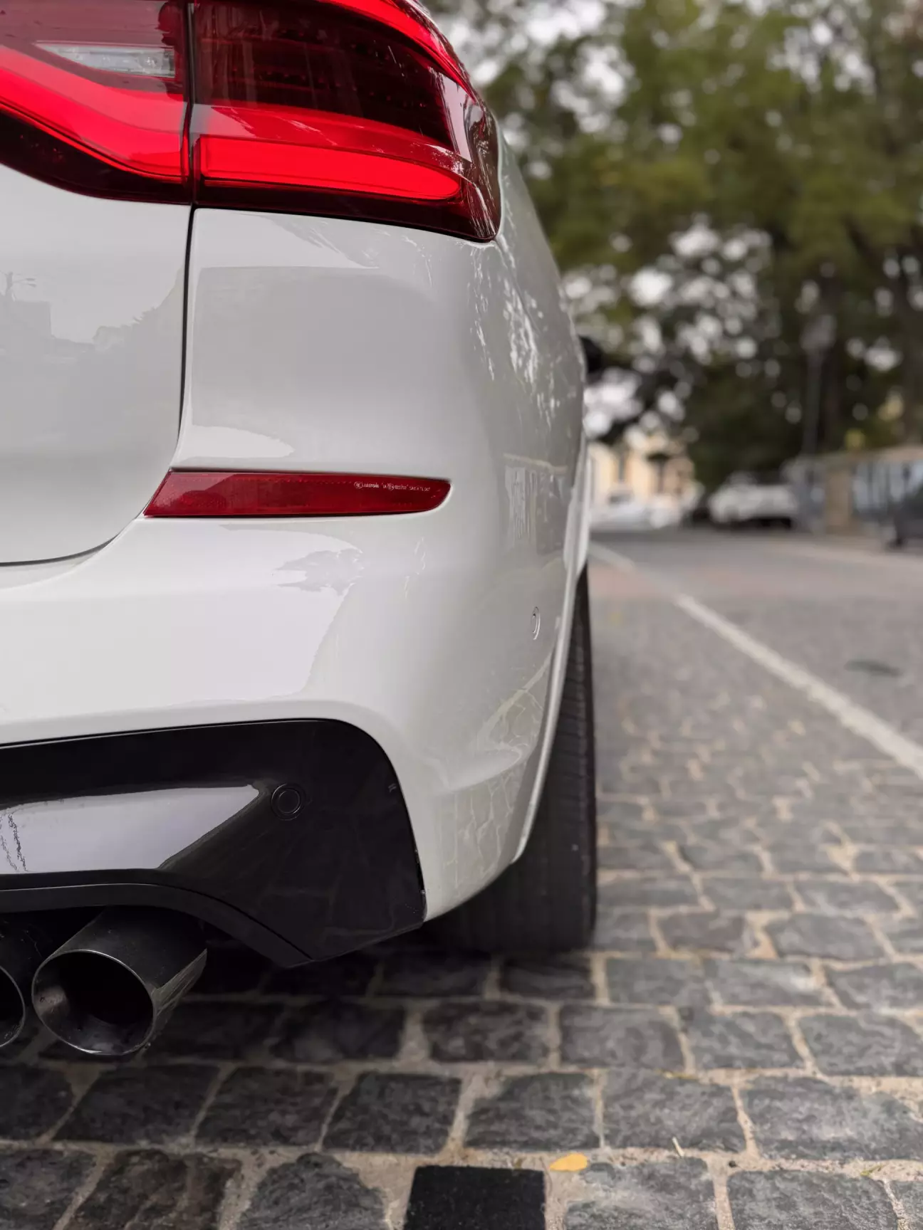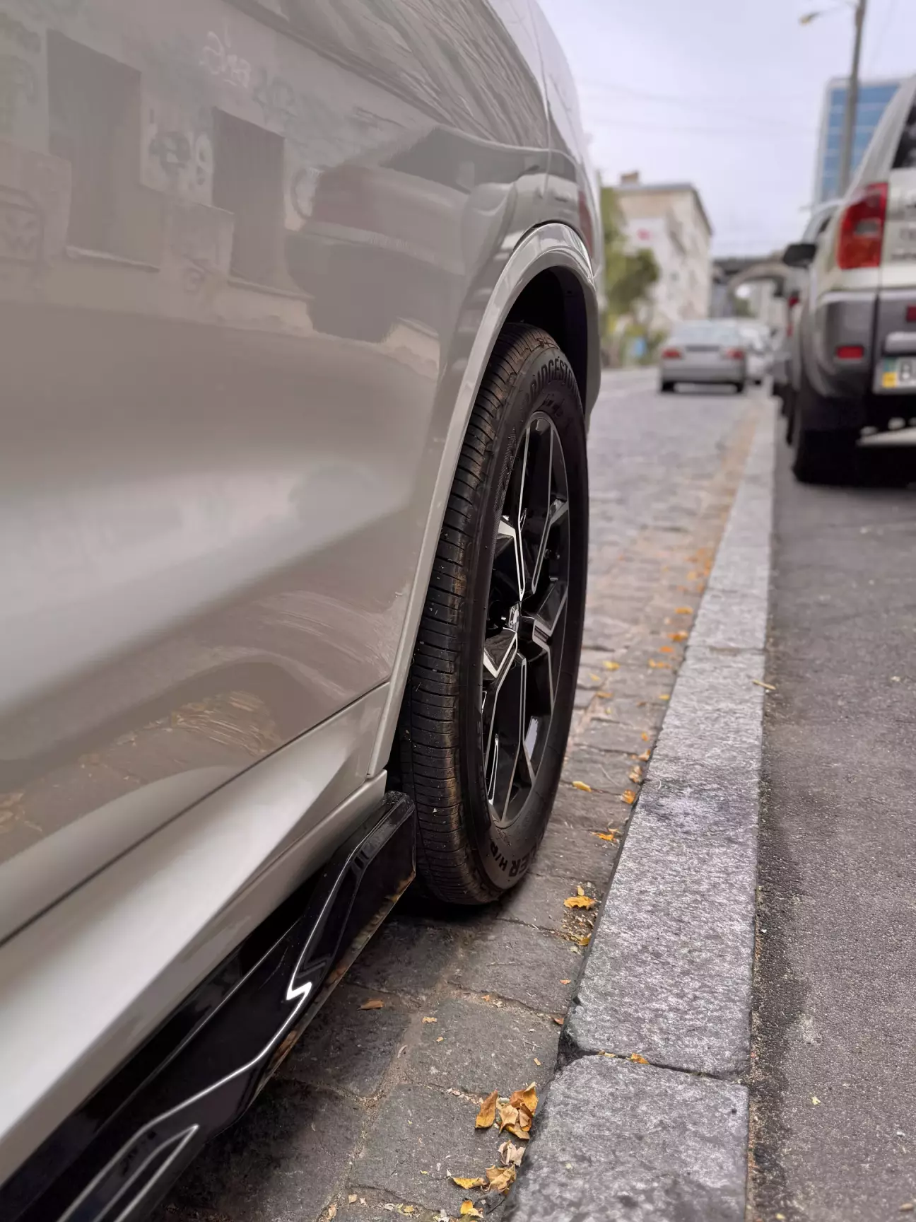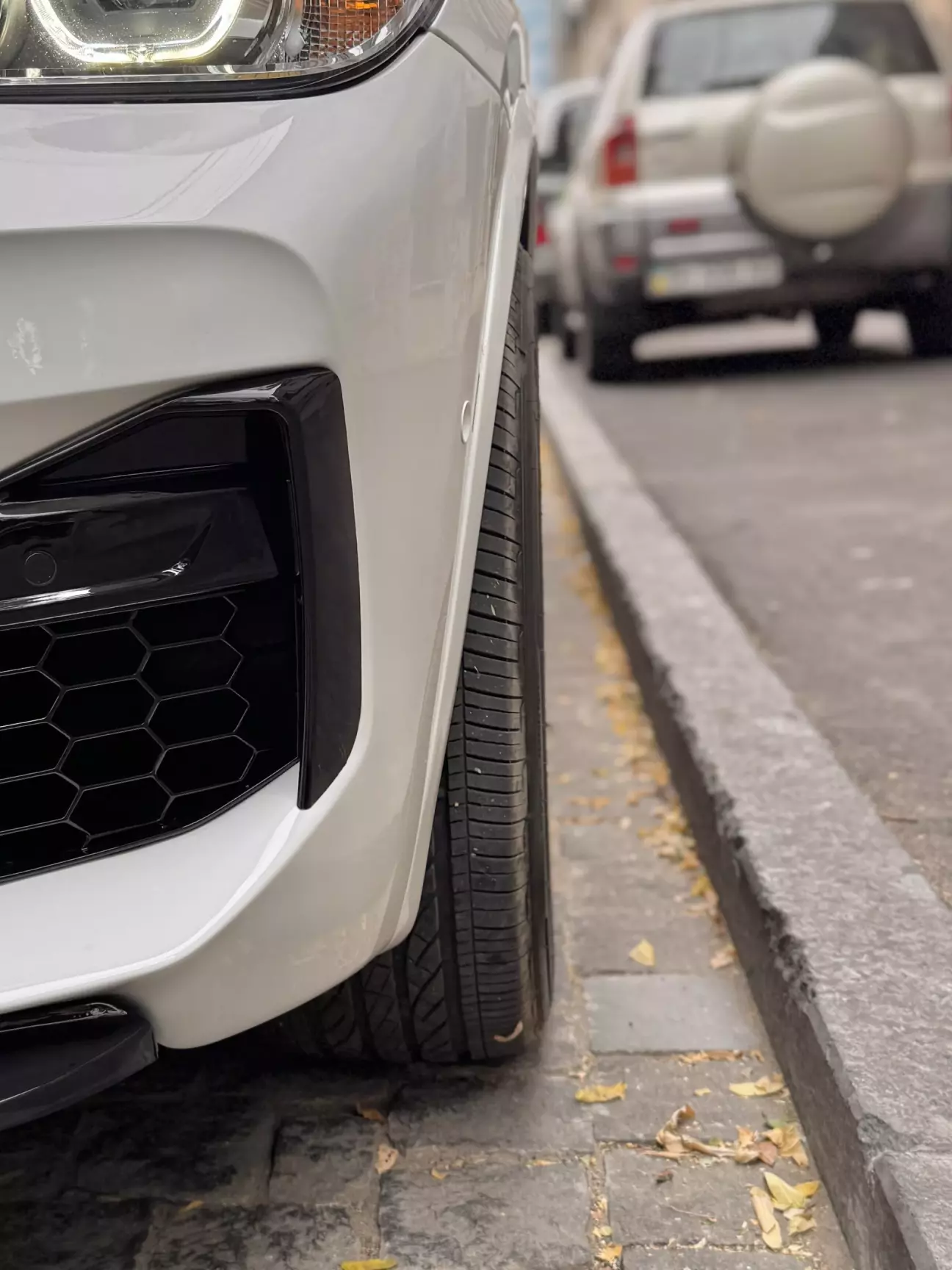 Нагадую, що на автомобілі встановлені рідні 19 диски 693 стилю, які у звичайній комплектації Luxury Line/XLine в арках нібито виглядать не погано. Проте мій автомобіль вдягнений у Х3М пакет, відповідно пластикові арки на М-пакеті приблизно на 1,5 сантиметри ширші від звичайних чорних арок. Саме через це візуально колеса сиділи ну дуууже глибоко в арках, тому без проставок тут ніяк.
