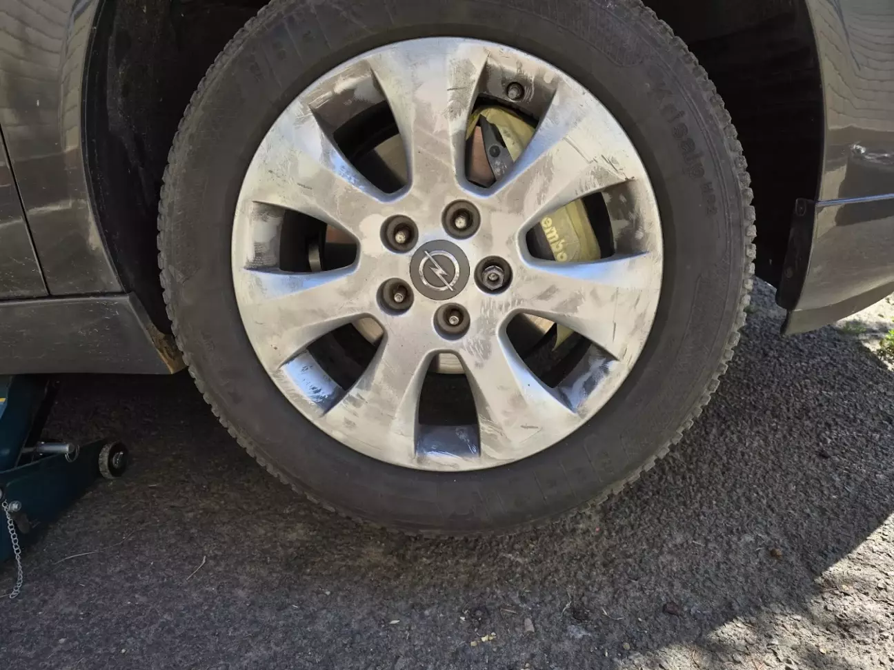 Поштовхом до цього апгрейду стала зустріч у 2023 році зі знайомим Олегом з Insignia-клубу. На одному з автомобілів, якого він фарбував, були встановлені супорти гальмівної системи J62, здається, під 332 мм диск, що вже виглядало цікавіше за мої штатні J61 під 321 мм диск з супортом-скобою. Проте справжній вогонь запалився пізніше, коли Олег оновив свою систему до гальм від OPC версії — потужних супортів Brembo під диск 355 мм (або 350 мм, як на OPC).