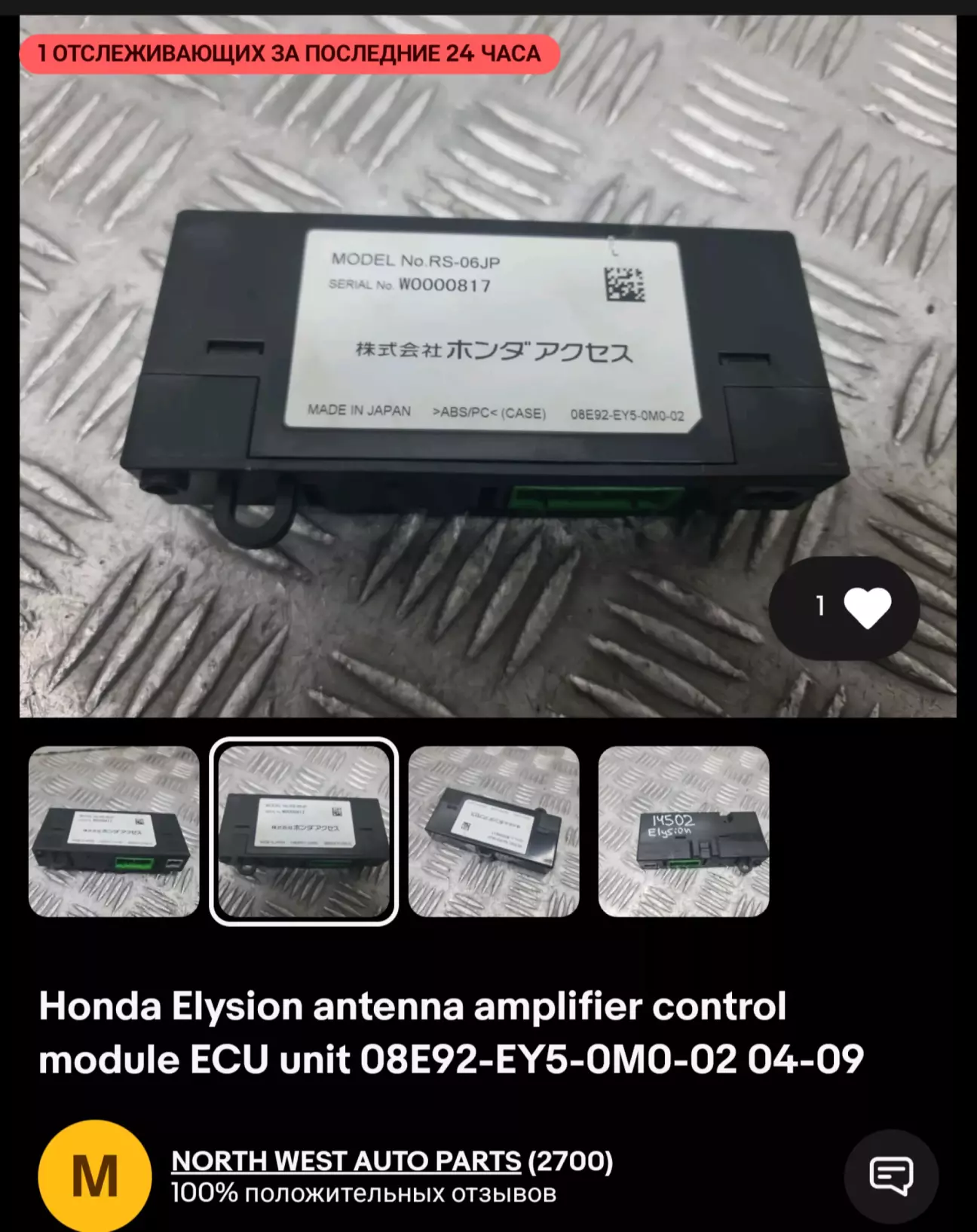 Хоча насправді, останній рік я навіть не пробував, навіть вже забив та забув, але в нашому чаті всплило повідомлення про пошук такого комплекту, на що я відповів "нереально". Але вирішив таки пошукати ще раз, маючі всі номери пішов у Гугл і один із перших результатів привів мене на ібей. В Англії на розборці був Honda Elysion з цим аксесом, але продавець мабудь дупля не відбивав що це, блок я знайшов саме за номером, який він вказав, але підписано було як "підсилювач антени"...ну, в нього підключена антена, мабудь логічно....