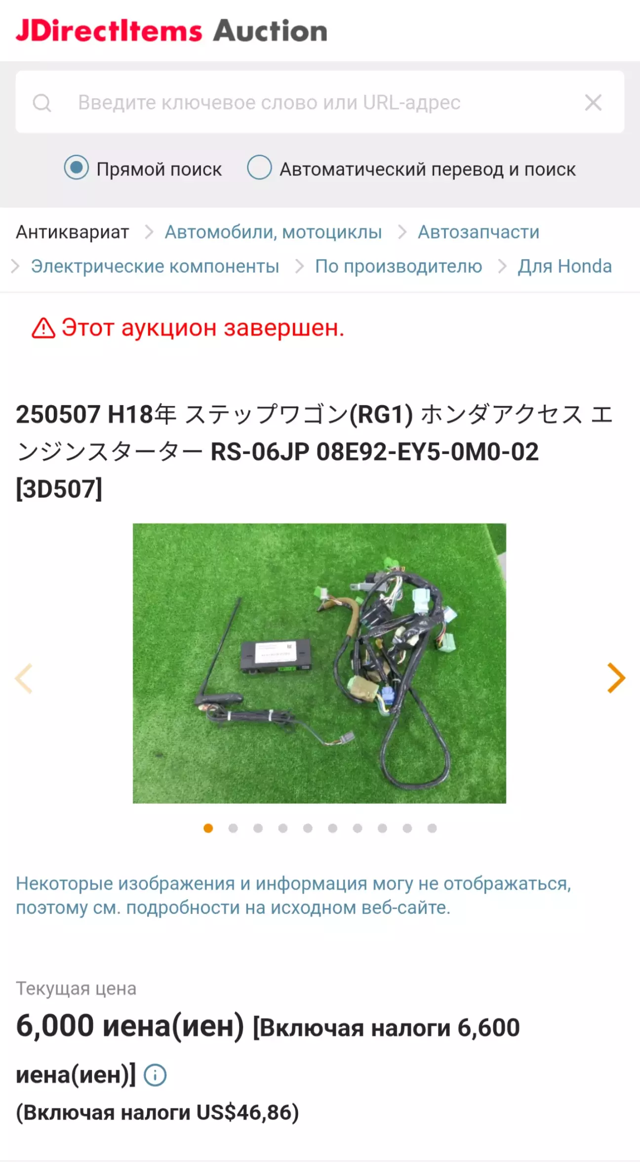 Ну припустимо проводка не страшно, а от антена треба, повертаємося на початок, але гуглимо вже антену. І тут живл трапляється вдруге, я знаходжу антену, проводку та ще один блок (ключ втрачено) на аукціоні в Японії. І ціна ну просто смачна, вирішую замовляти.