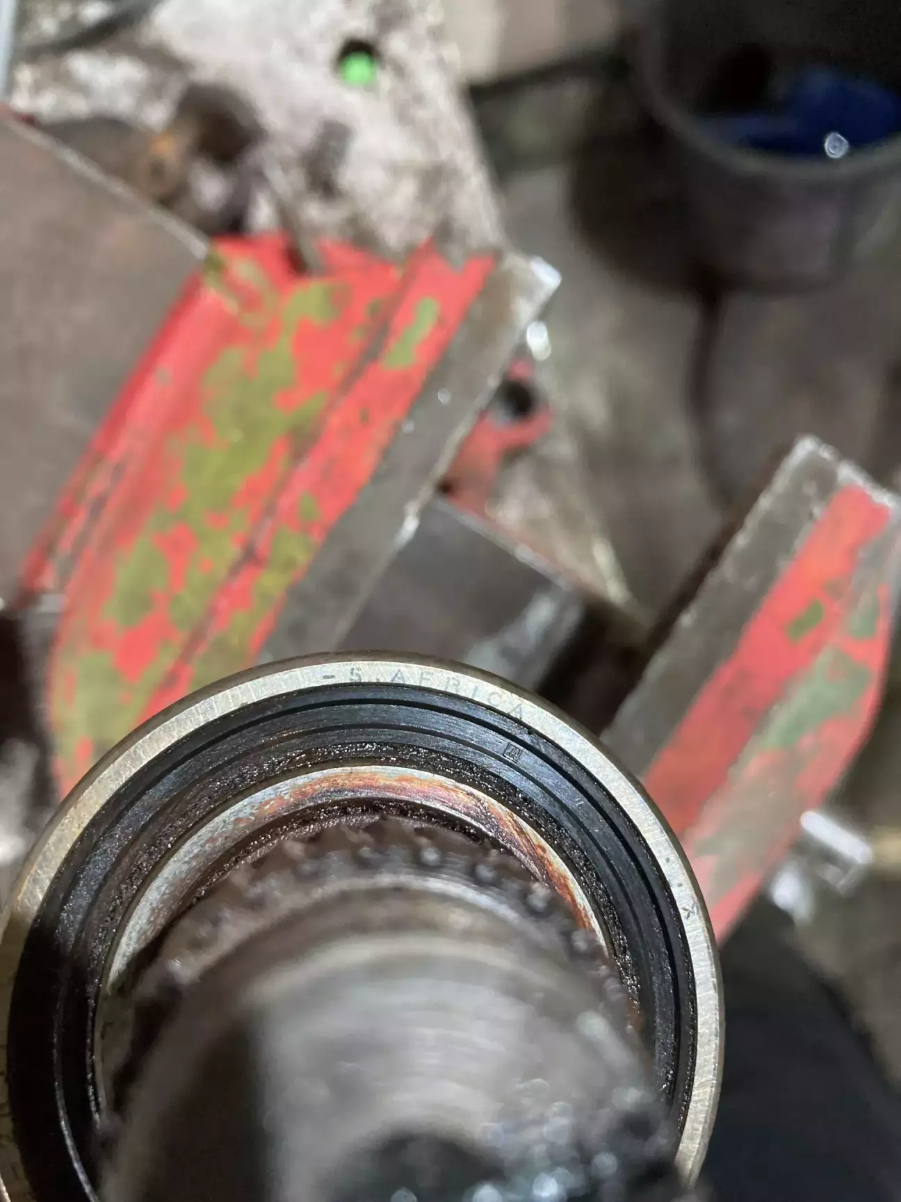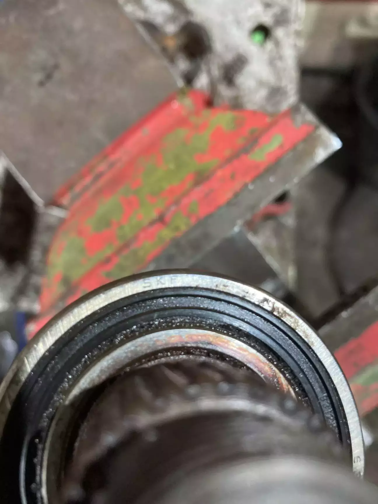 После чего сбиваем фланец, снимаем крепежную пластину и можно выпрессовывать подшипник.
