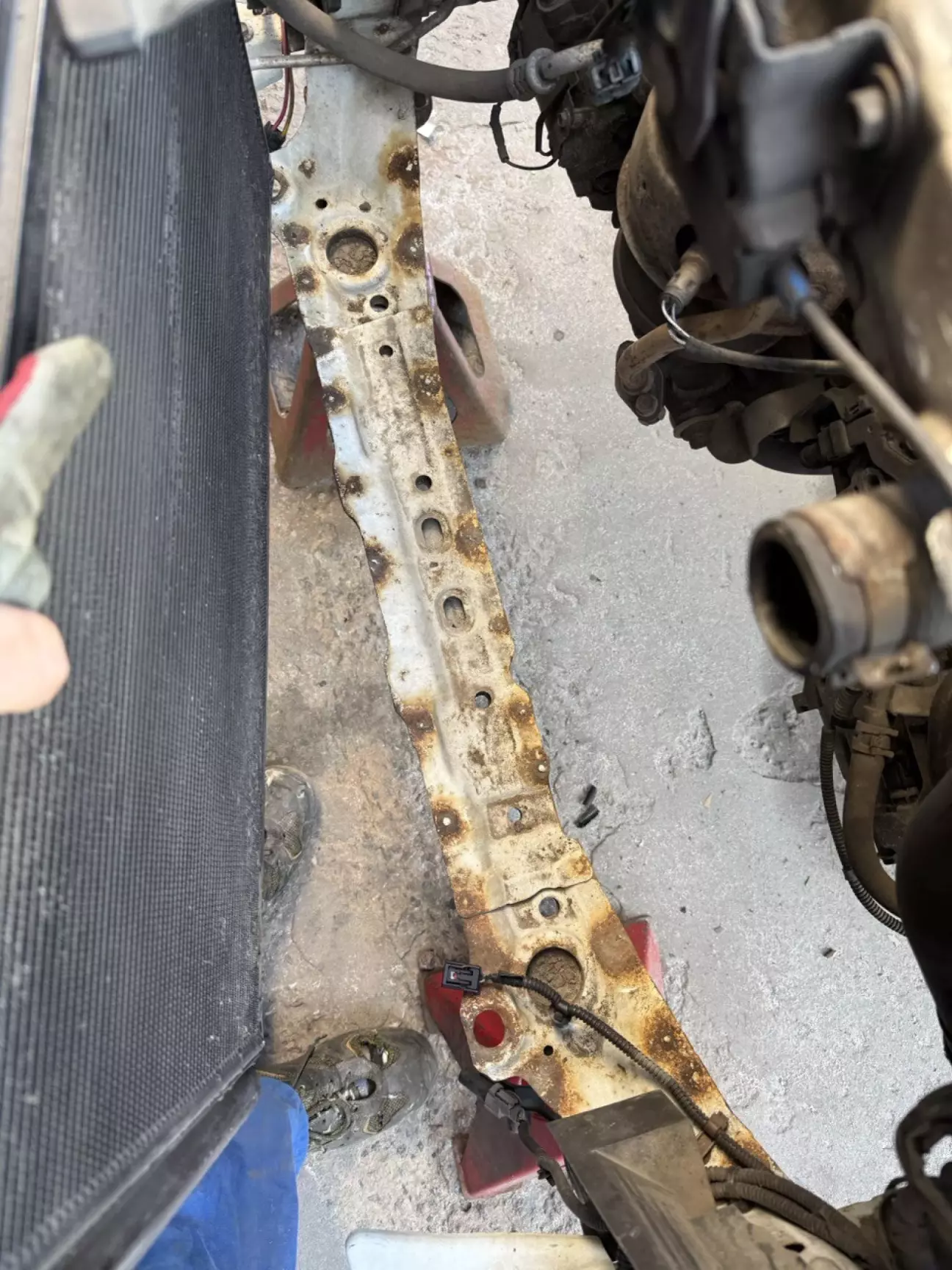 Переходимо до правої сторони. Тут ситуація трохи складніша, в двох місцях є ділянки де прогнило наскрізь, внизу біля кріплення додаткового кронштейна підрамника, видно набивався бруд і там собі робив своє діло, і вище на стику елементів.
