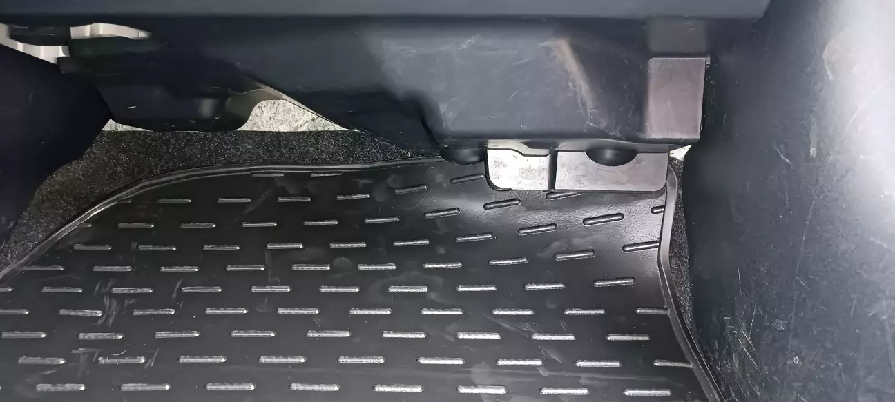 Передній лівий ліг добре, на ньому навіть є кліпси щоб закріпити коврик, але змісту від них я не бачу, оскільки конкретно цей коврик лежить і так плотно по всьому периметру підлоги. Домахатися можна було б хіба до місця біля ручки відкривання горловини паливного бака, але це вже прям дрібниця. Можливо якби під гумовим ковриком не було ще текстильного то коврик сів би краще, я не перевіряв і дарма гнати на виробника не буду. Дуже сподобалось що в місці, де водій впирається правою п'ятною в коврик виробник наплавив додатковий шар гуми, зробивши коврик ще більш живучим. Далі по фотках і так все ясно як божий день.