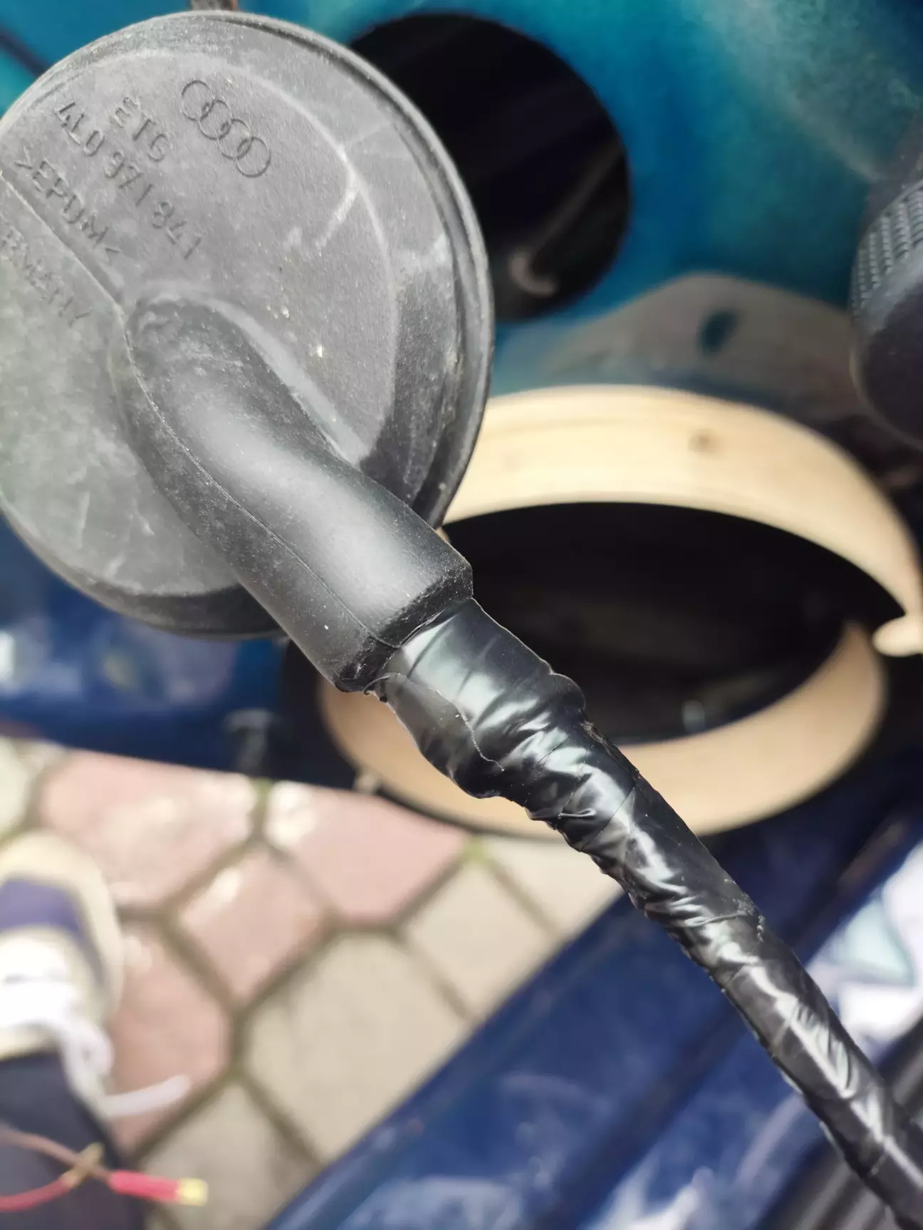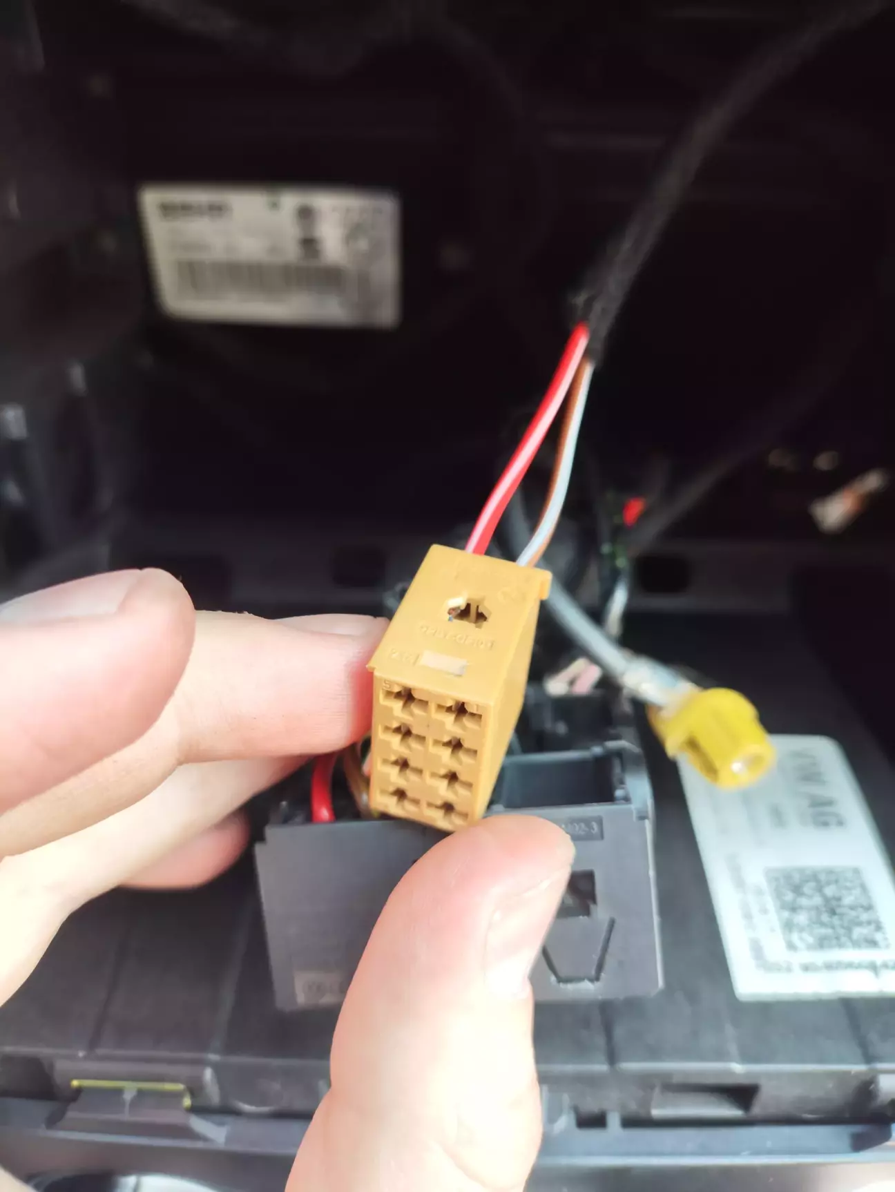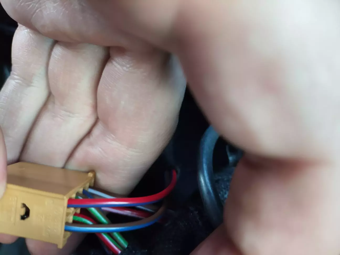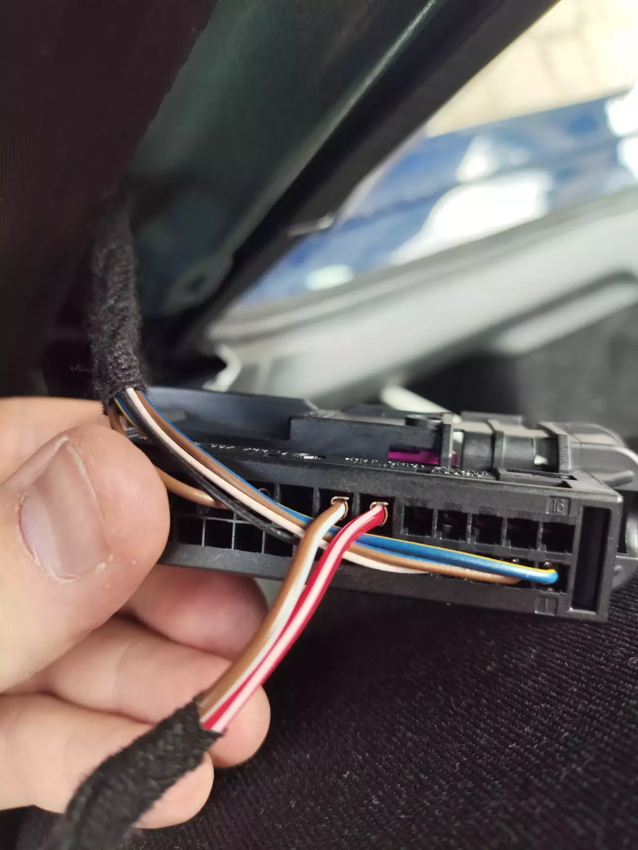 Далі необхідно запінуватися в роз'єм всередині двері, і вставити наш новий кабель в штатний жгут проводів, який йде всередині двері. Для цього видаляємо стару ізоленту, протягуємо новий кабель, мотаємо нову ізоленту.