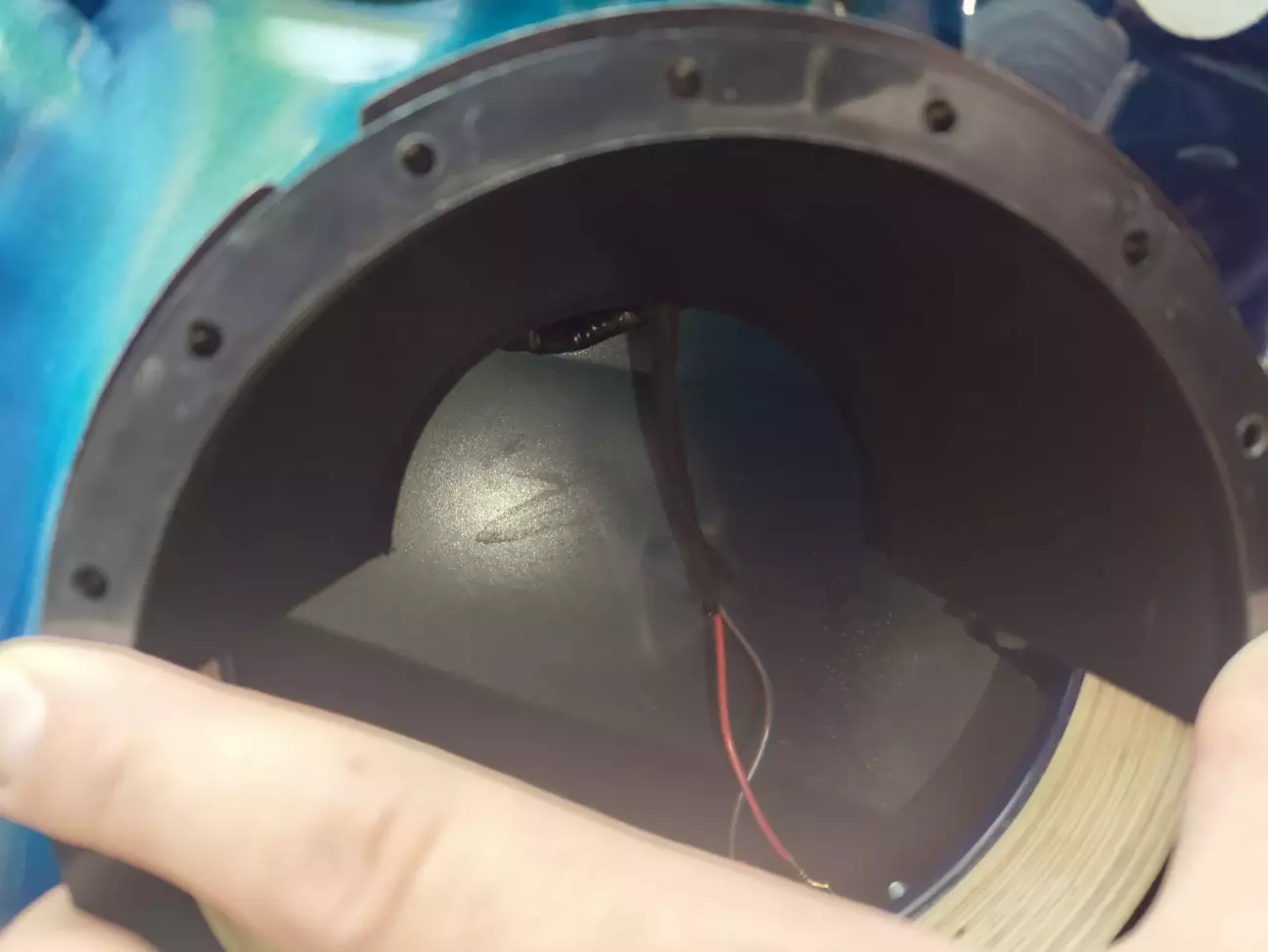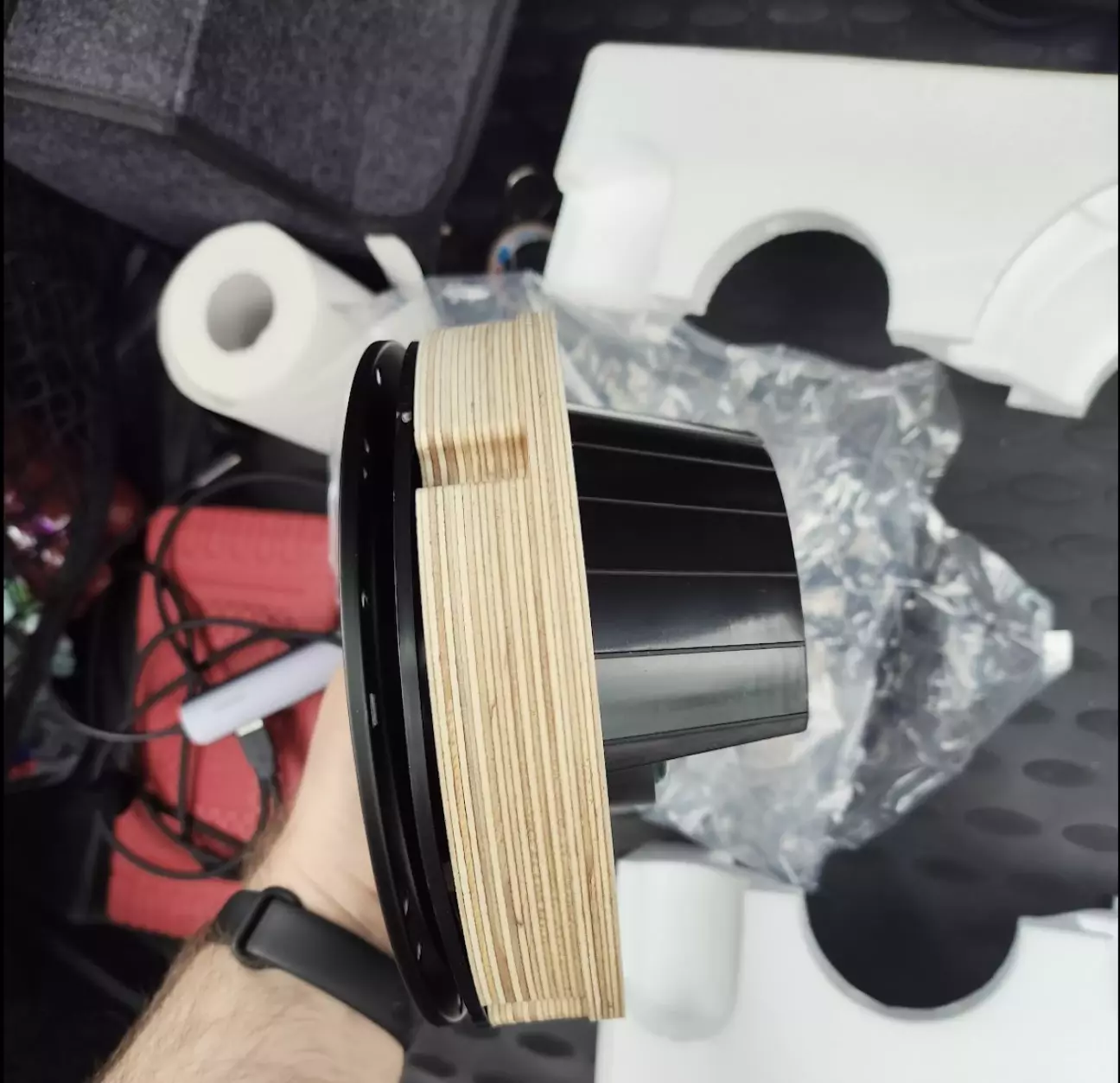 Так як заклепуватися нам потрібно прямо в пластиковий корпус динаміка, а зусилля при цьому прикладається досить велике, то присутній ризик відламати "вухо" динаміка. Для того, щоб цей ризик нівелювати, при заклепуванні ми будемо використовувати звичайну 5 мм заклепку + гумову прокладку від будівельного саморіза.