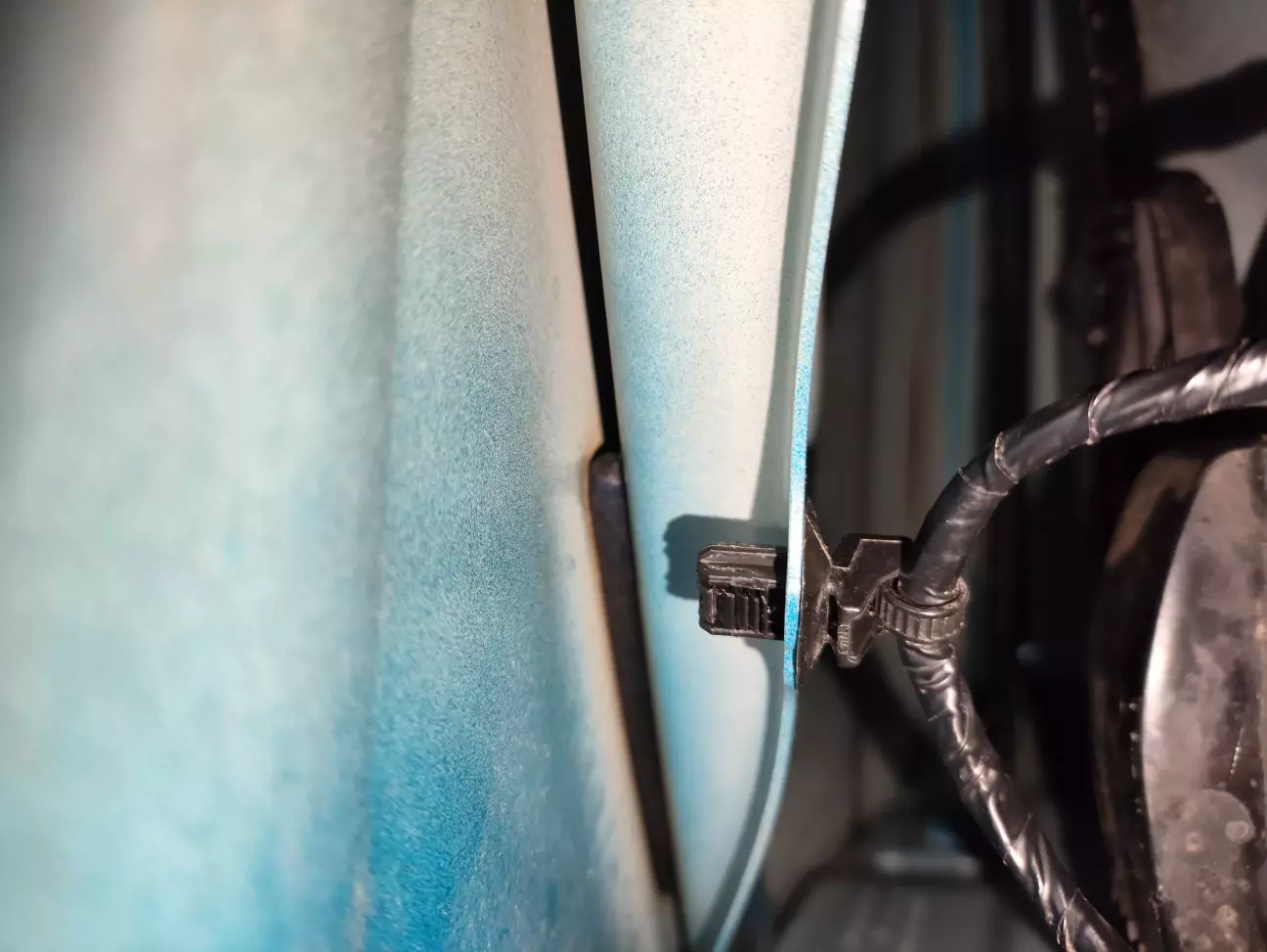 Всередині двері кабель кріпимо на штатне місце пластиковою стяжкою.