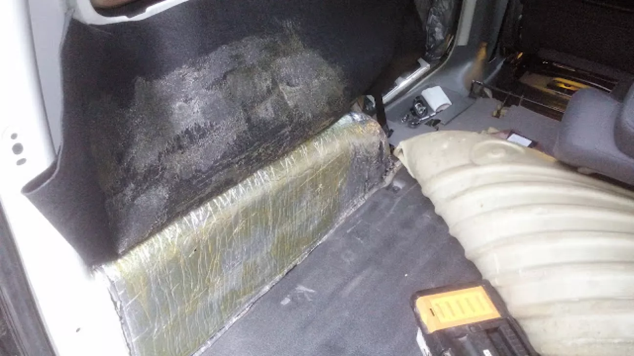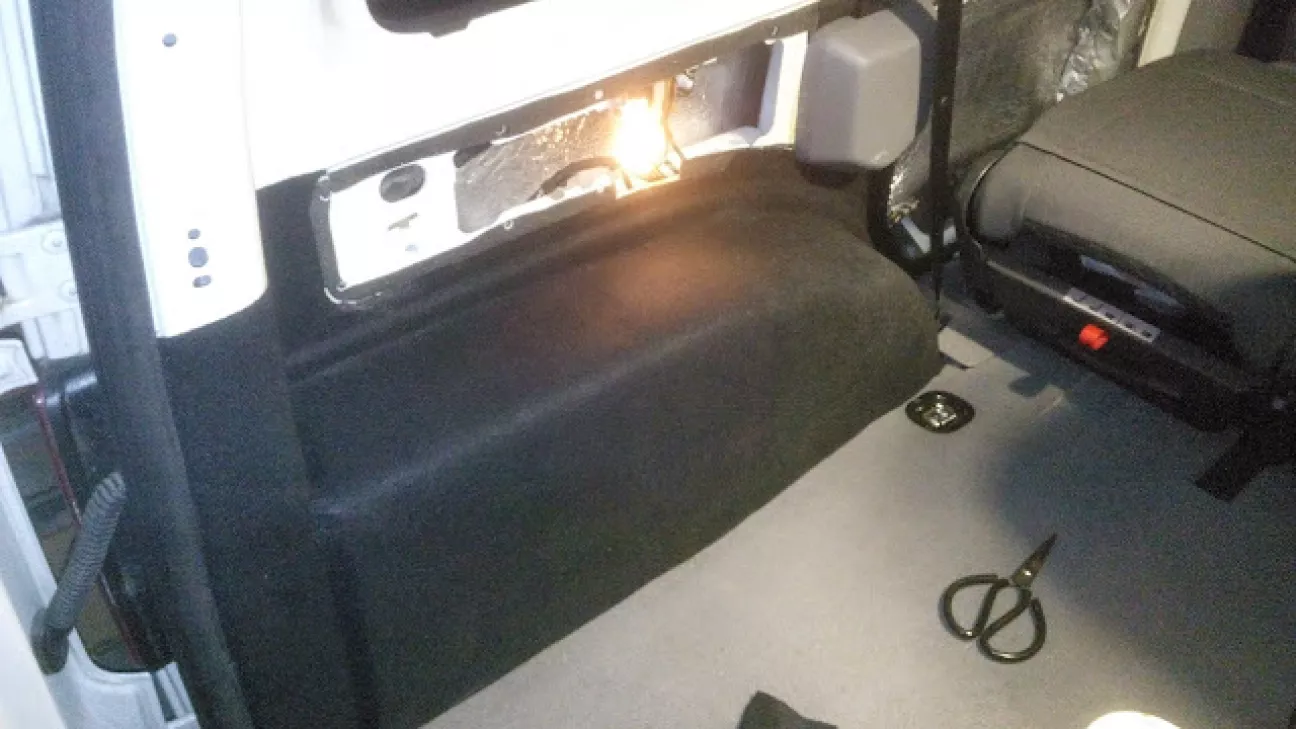 І сховав у стійки та під рамки сидінь проводку на підсвічування ніг. Облом було відкручувати тумби, тому трохи видно дроти