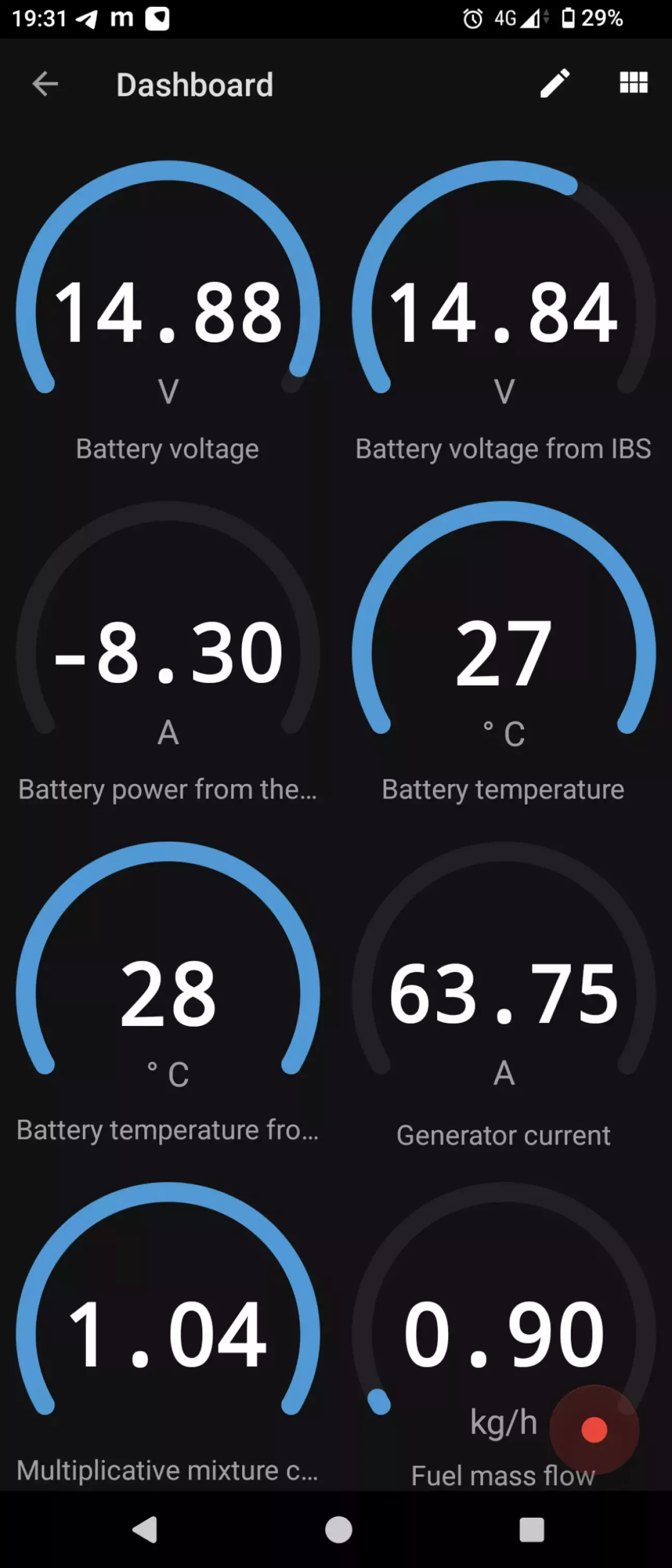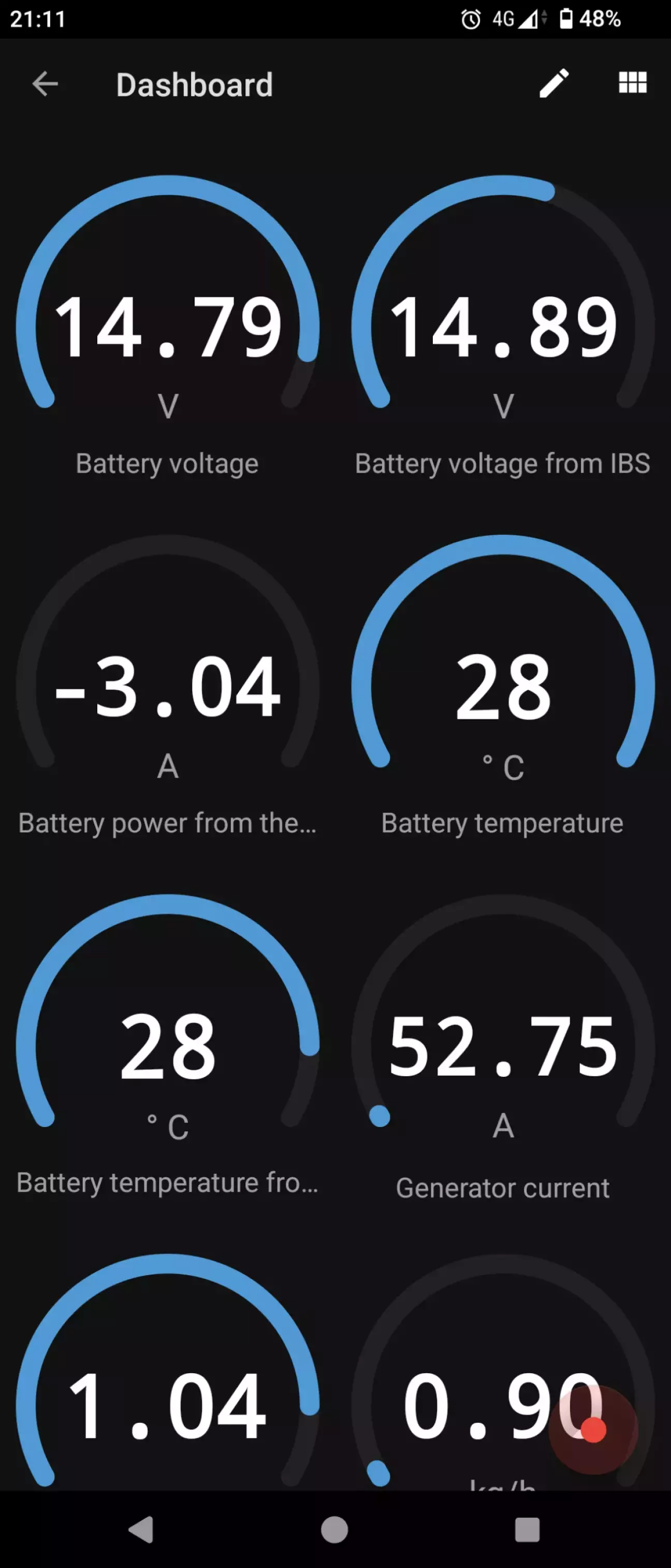 Ввечері наступного дня забрав Ікса, який відразу почав заряджати сам себе. Добре, що назбиралося трішки справ у різних районах Києва - генератор активно працював протягом поїздок. Нижче скріни показників у різний час вечора.