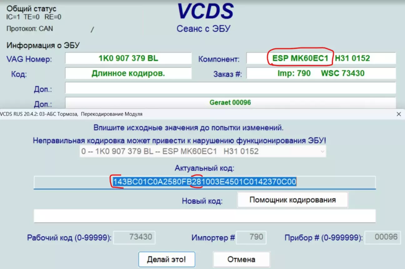 Включаємо запалення, запускаємо VCDS 💻, кодуємо: