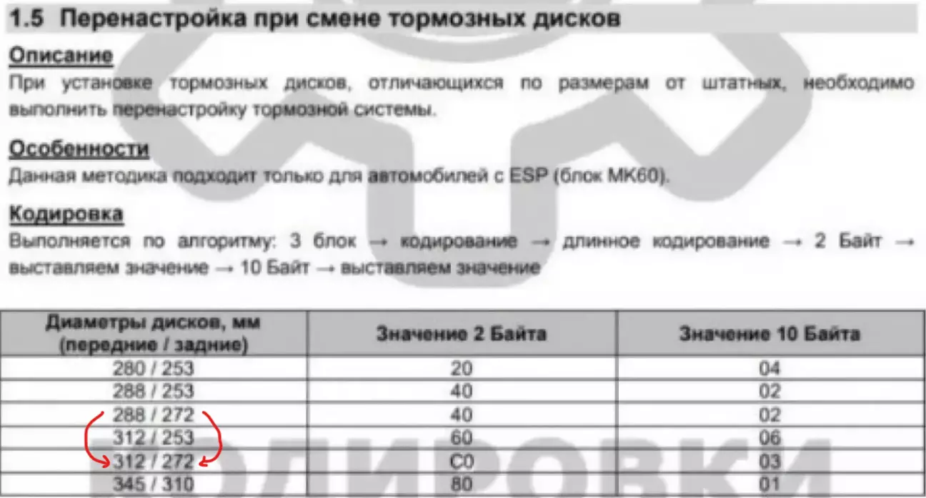 ℹ️1) Після заміни підвіски в залежності від її висоти кодуванням можна регулювати гальмівне зусилля та роботу ABS/ESP за наступною схемою в 03 блоці