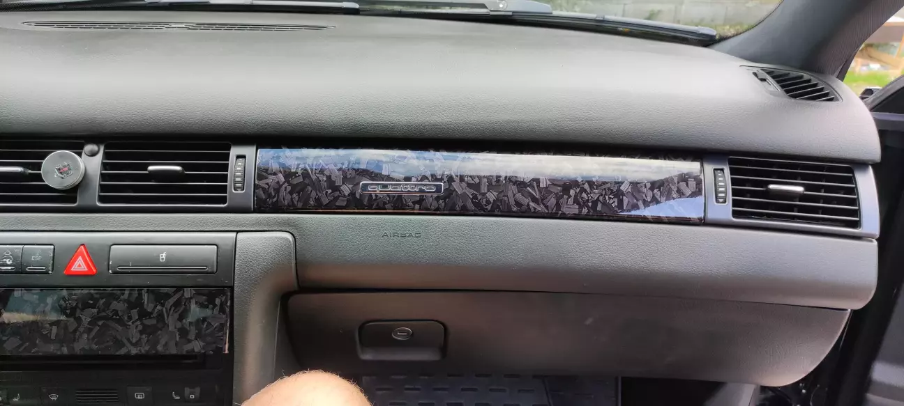 Привіт сильно я нічого не робив по машині таке мєлочовка заміна мастила так сказати нічого цікавого захотілось мені чогось не звичного знаю за варіант з деревом но не маю бажання та і не бюджетне то рішення замовив з аліекспресу самоклнйку і вирішив зробити так як подобається це мені як на мене симпатично і бютжетно 250грн + 30кешбека і 1 година роботи Тай все 6 елементів обклеєні