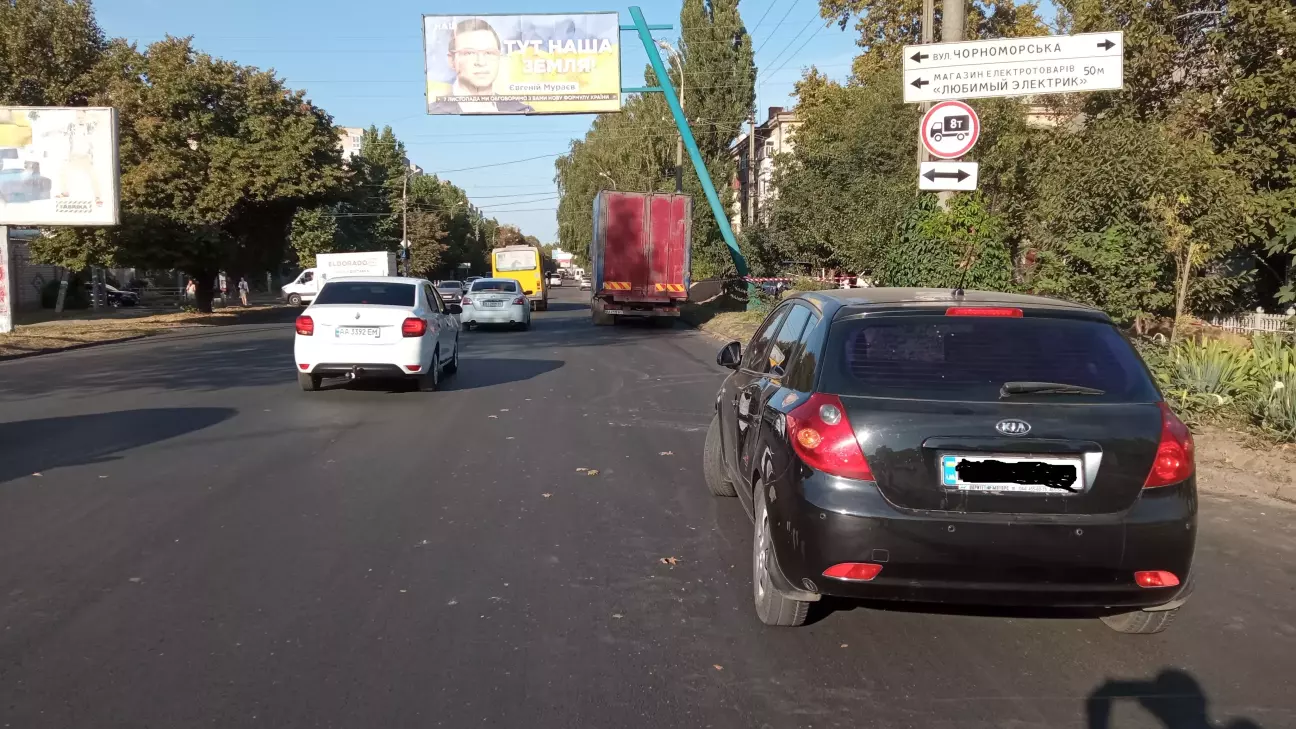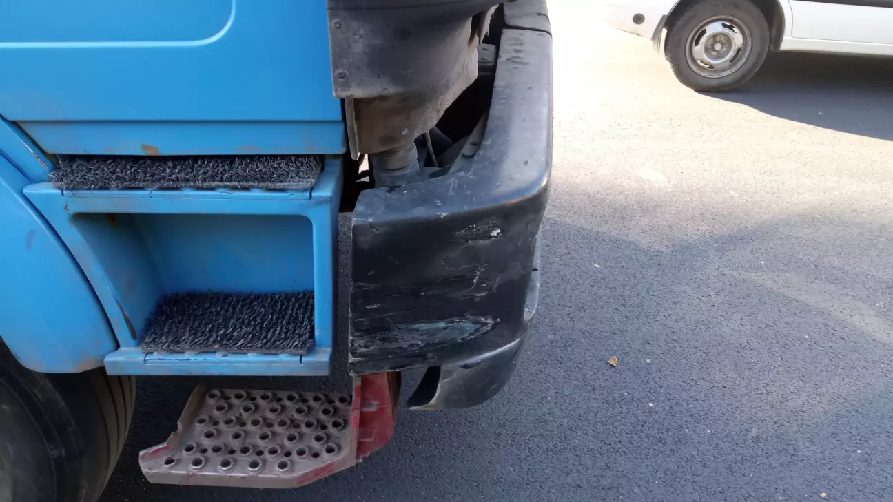 Після перемикання світлофора лівий ряд поїхав трохи раніше і тут я відчув поштовх і почув скрежет , повернув голову і побачив я вантажівка проєжає поруч.