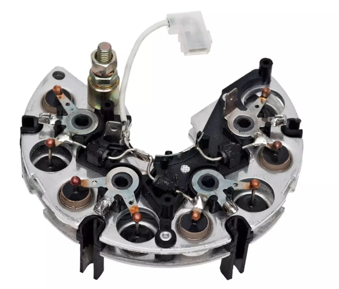 – діодний міст перетворює його у постійний струм, придатний для живлення електросистеми автомобіля і заряджання акумулятора.
