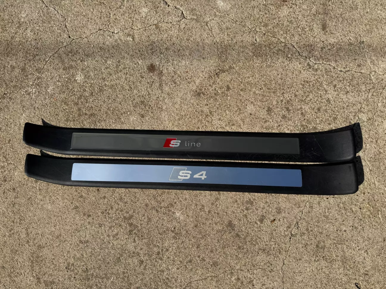 если честно — оте силиконовые S-Line с б6 кузова выглядят визуально дороже чем на б7 кузове и эти что я купил, эти уже как удешевленные, просто кусок алюминьки с гравировкой, по сути можно сделать сейчас в любой конторе под заказ такое с какими угодно символами можно сделать, можно сделать даже лучше при желании, а вот такие как раньше силиконовые — не сделаешь… да и на силиконе ни одной царапины, когда пластик подертый… качественно ж делали… ну уже что есть, будем ставить то что лучше сохранилось