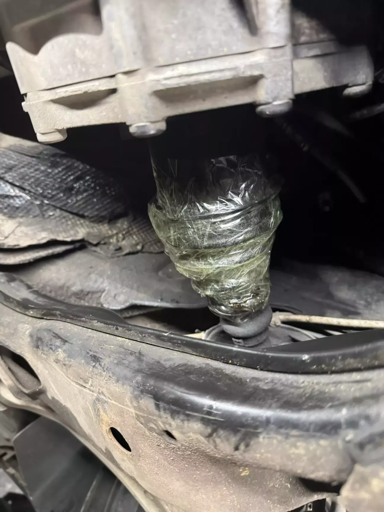 что то понесло меня как то под машину посмотреть что там как, смотрю днище и подрамник передний жирный — лопнул пыльник левый внутренний… пришлось отремонтировать))