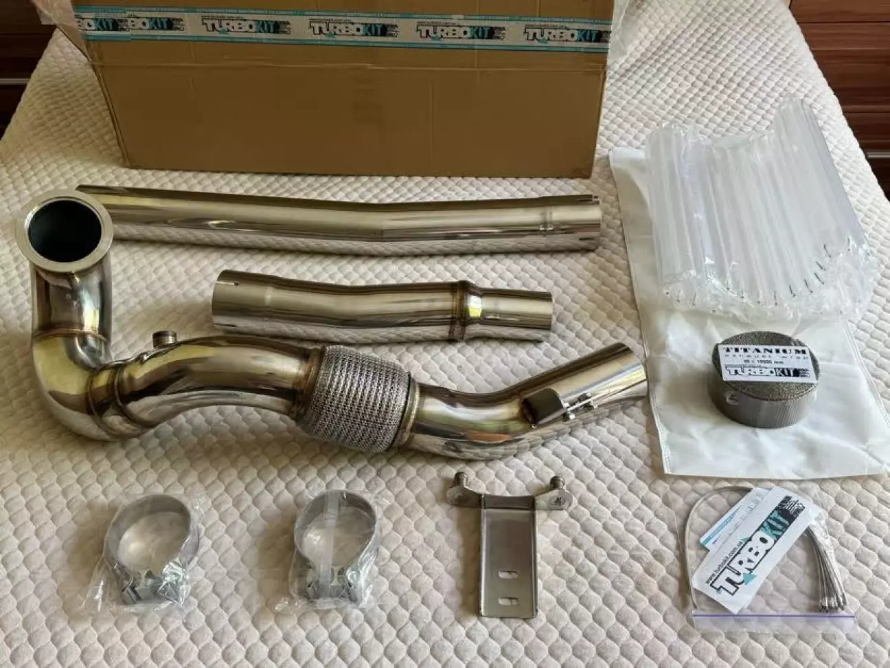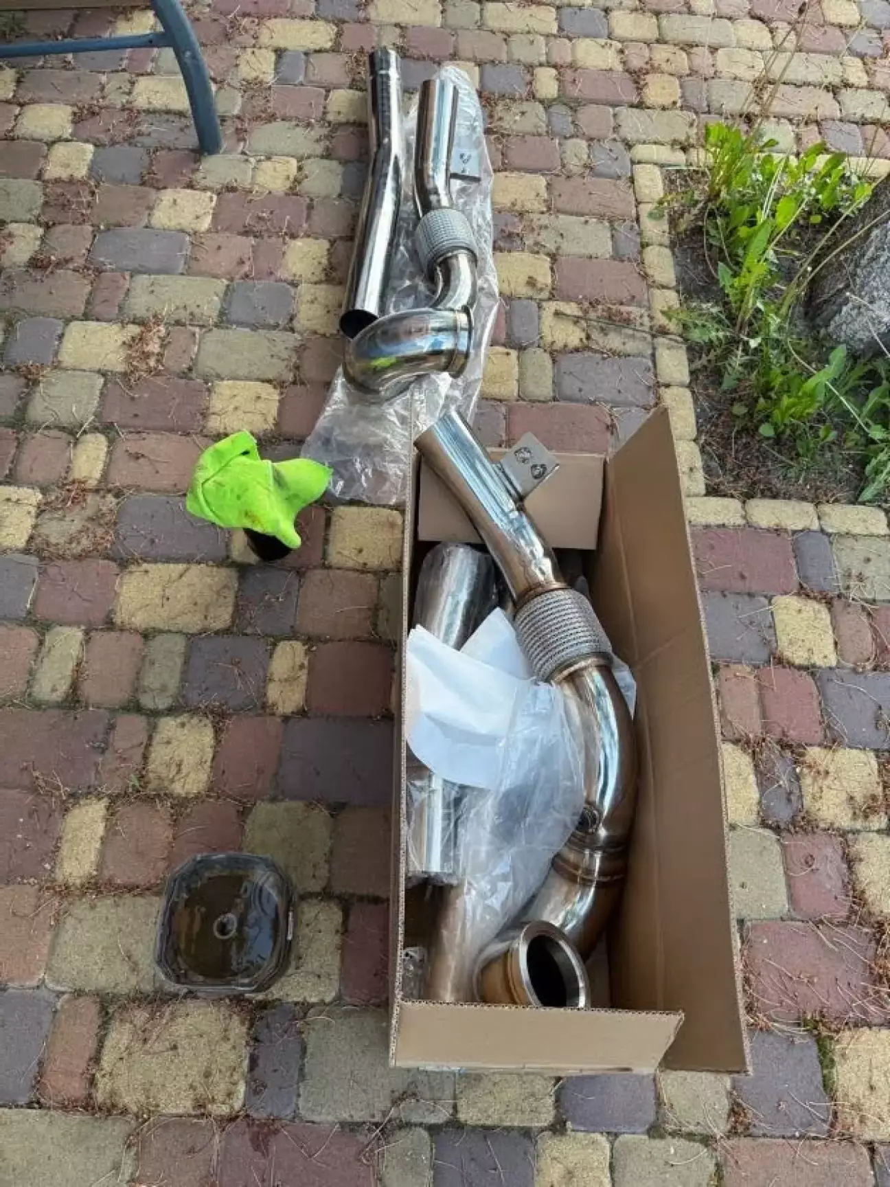 Якось зустрілись після роботи з моїм другом @БілийФіксік і розмова зайшла про збільшення потужності, стейджі, допрацювання ітп. У висновку вирішили йти одночасно до stage 2. На балачках не зупинились, тимбільше холодний впуск вже був встановлений (писав про це тут), тому буквально на наступний день я замовив 2 однакових даунпайпи з турбокіта. Питав в клубі чи ще хтось хоче бо можна було б купити по "оптовій знижці -10% від 3 шт.", але бажаючих не знайшлось та я довго не чекав щоб не розтягувати процес.