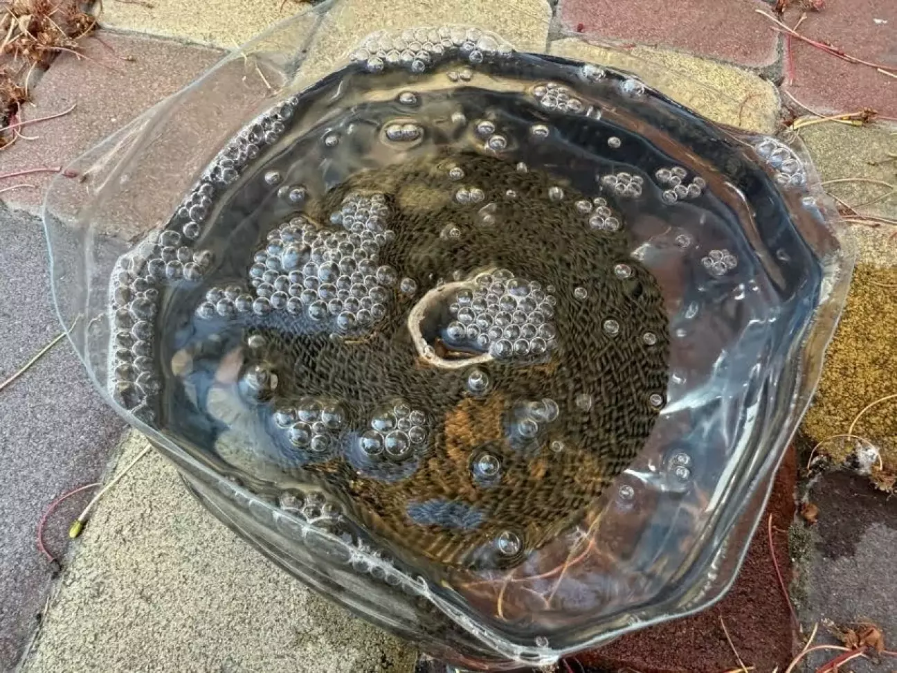 Для обмотки термобинтом потрібно замочити виток у воді на декілька хвилин для кращої еластичності бинта доки бульбашки не зникнуть, ось так це виглядало у нас: