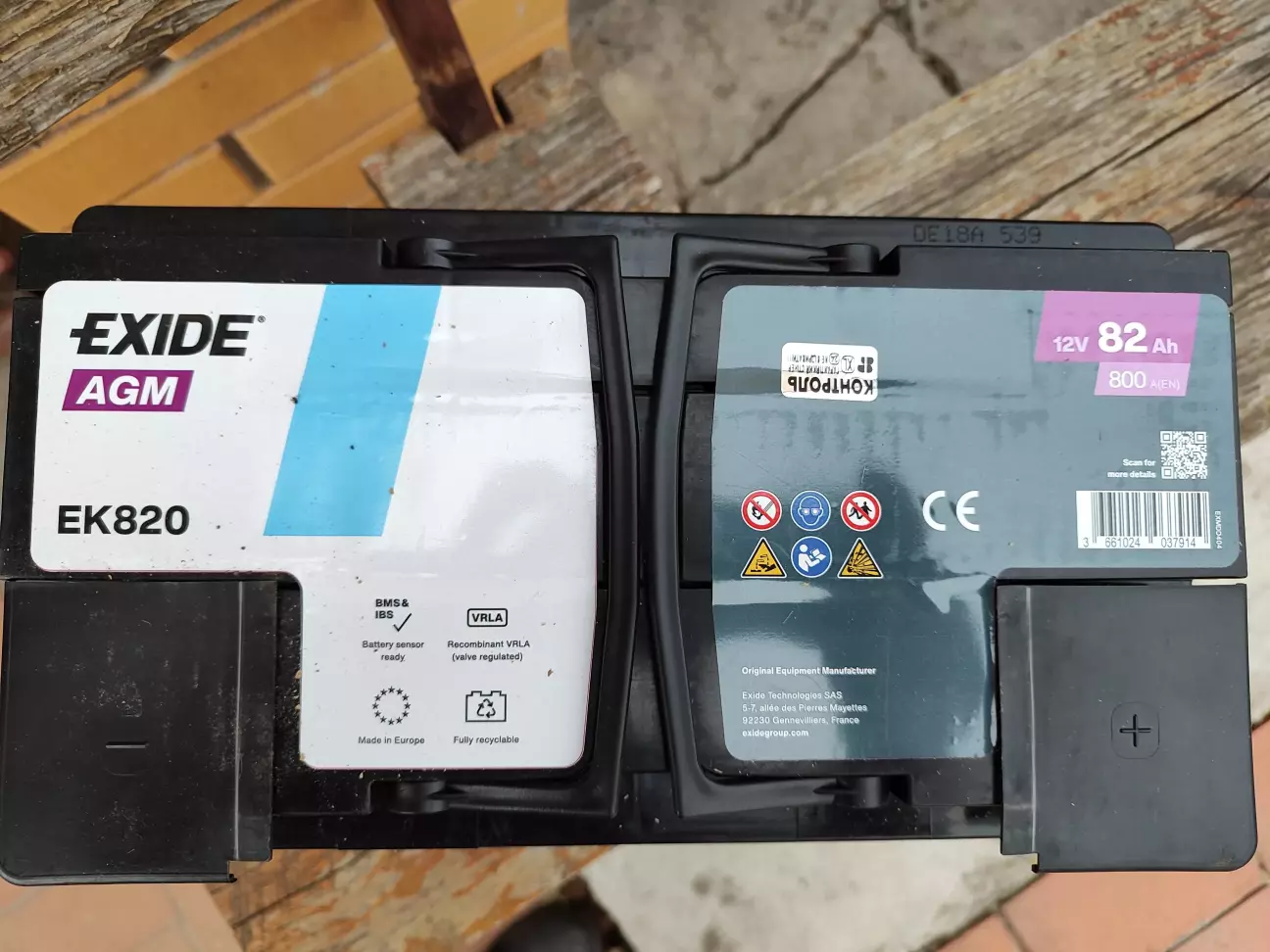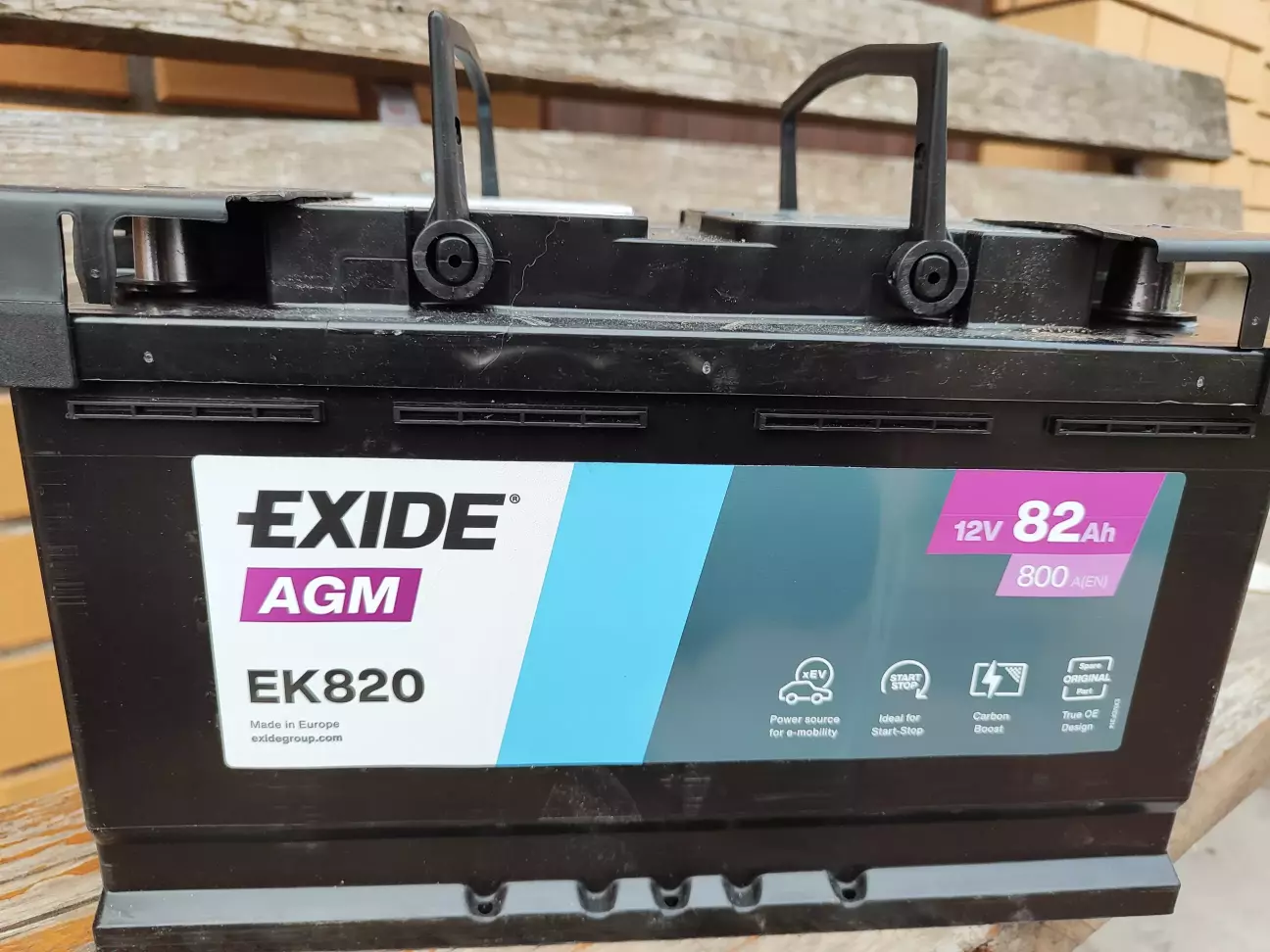 Десь два тижні тому почав помічати, що якось автівка туговато запускалася, глянув напругу на акуумі і стало зрозуміло - розрядився. Зарядив його повністю але на довго не вистачило, через пару днів знову просіла напруга. Тому вирішив заздалегідь купити новий. На днях їздив до Києва і там заодно купив одразу і акумулятор Exide AGM на 82А, свіжий, щойно зроблений.