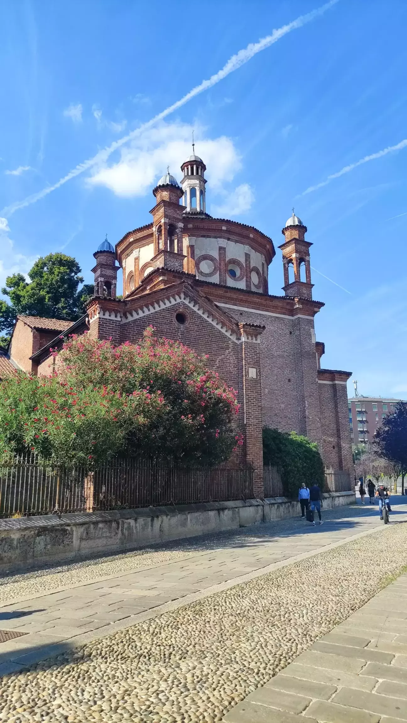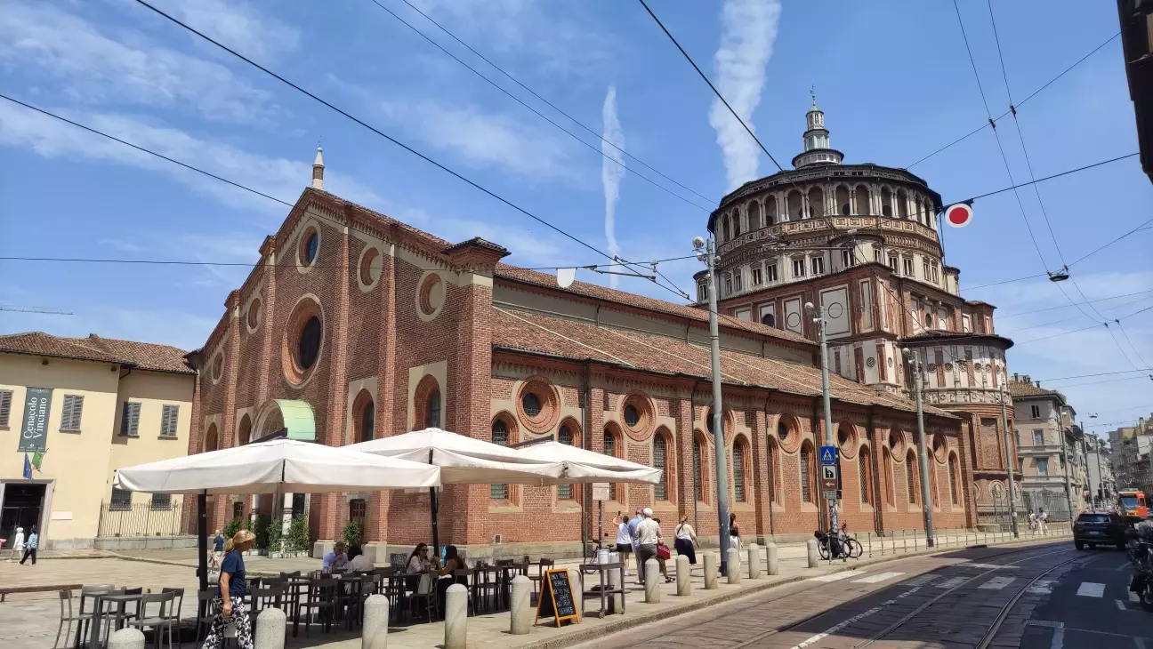 Пересадку ми робили біля церкви Санта-Марія-делле-Граціє. Архітектура церкви, збудованої між 1492 і 1493 рр. за наказом міланського герцога Лодовіко іль-Моро як мавзолей для його родини, є одним із найвідоміших досягнень епохи Відродження в Ломбардії. Це була друга італійська пам'ятка після наскельних малюнків у долині Валь-Камоніка, яку ЮНЕСКО класифікувала як об'єкт Всесвітньої спадщини, разом із фрескою "Таємна вечеря" Леонардо да Вінчі, яка знаходиться в трапезній монастиря.