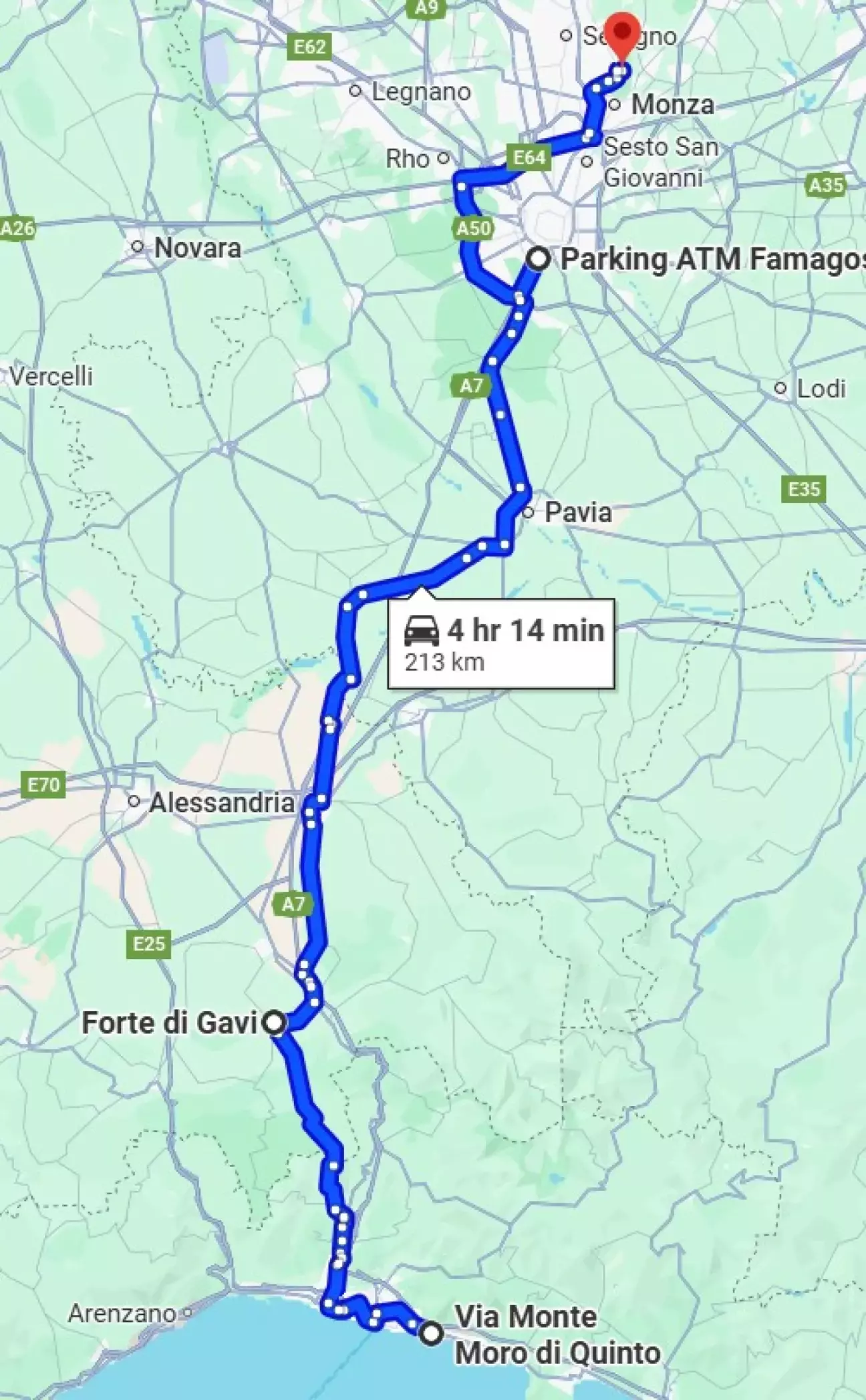 Навідпочивавшись на морі ми почали рухатися на північ до Мілану. По дорозі до метрополії ми зробили незаплановану зупинку, щоб помилуватися фортом в містечку Гаві. Ця історична, суто оборонна фортеця, побудована генуезцями на місці вже існуючого середньовічного замку. Колись він був частиною Генуезької республіки, а сьогодні розташований у п'ємонтському містечку Гаві, вздовж Постумської дороги, яка в давнину з'єднувала Генуезьку республіку з Нижнім П'ємонтом (Монферрато) та Ломбардією. З 1946 року він перебуває під юрисдикцією Міністерства культури.