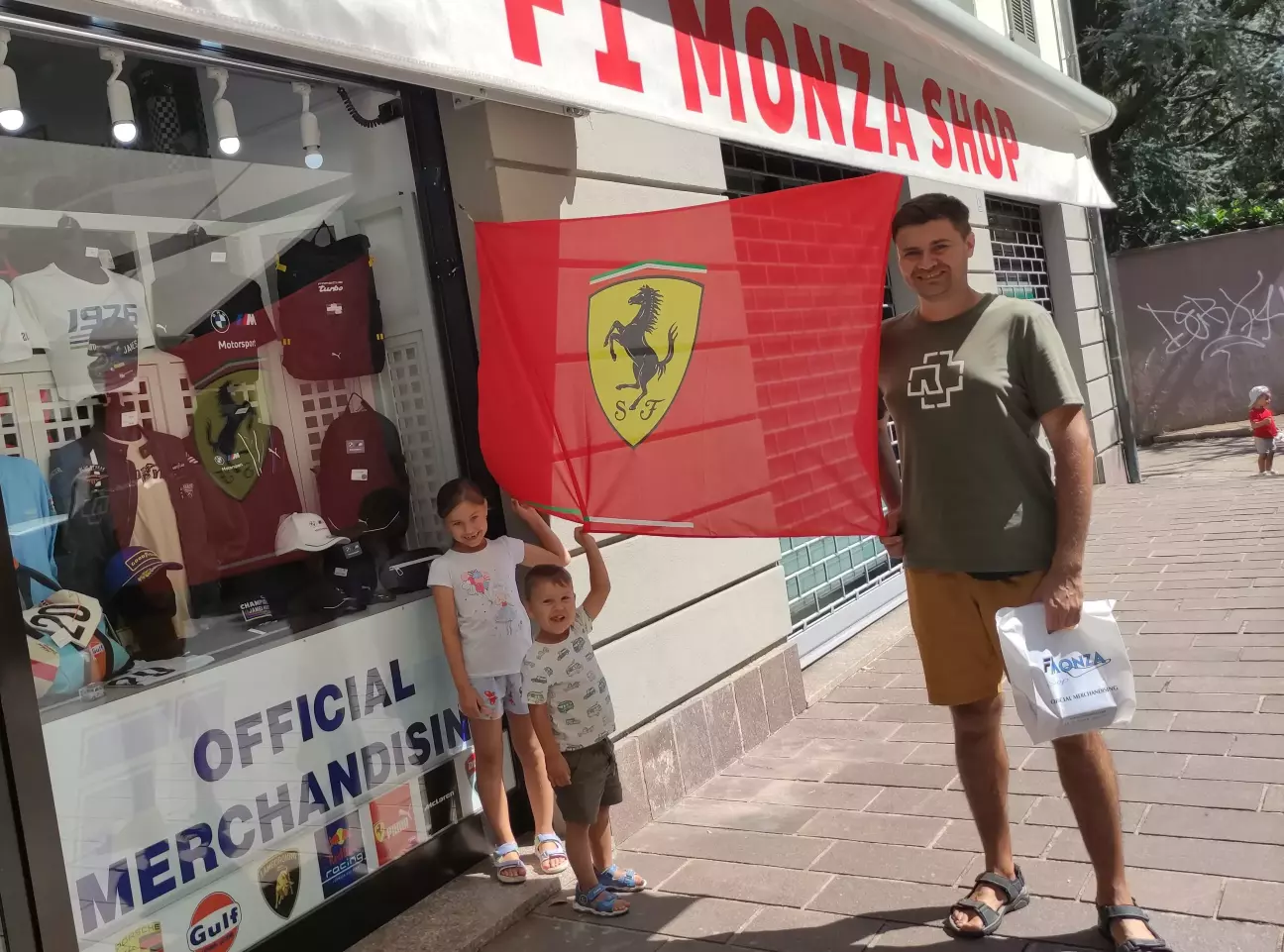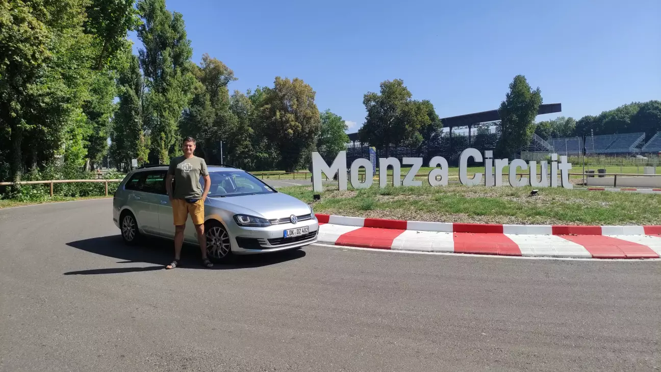 А далі ми завантажилися в Гольфа і з короткою зупинкою біля легендарного стадіону Сан-Сіро поїхали відмітитися біля гоночного треку в Монці.