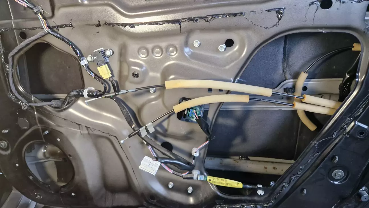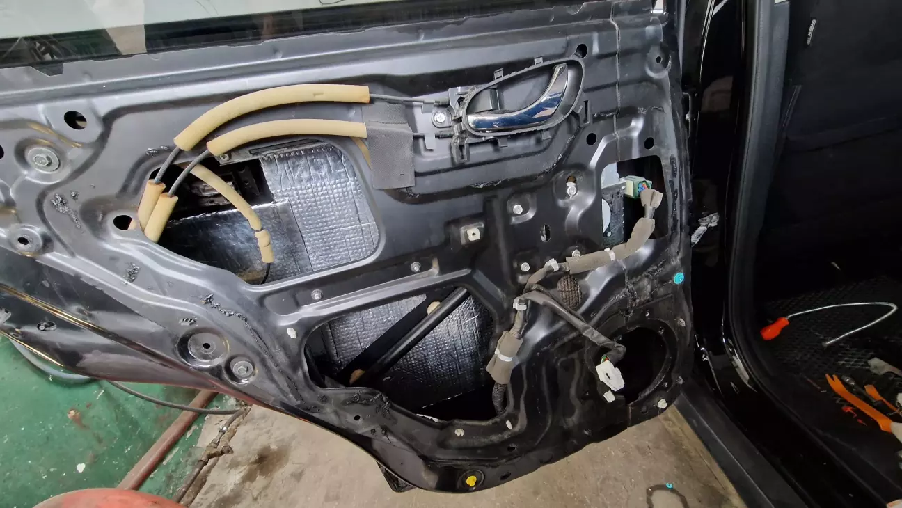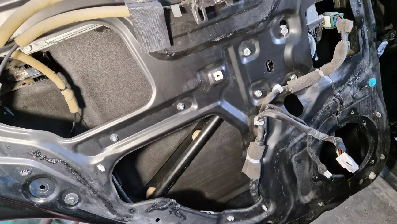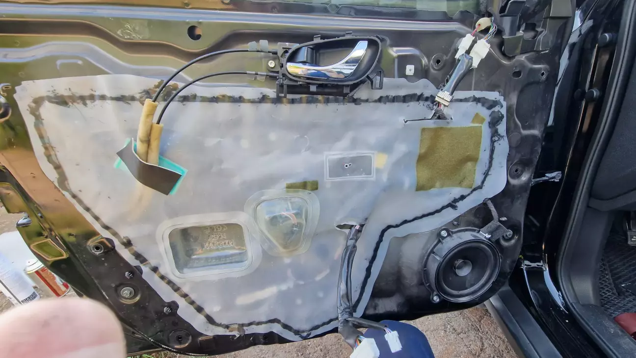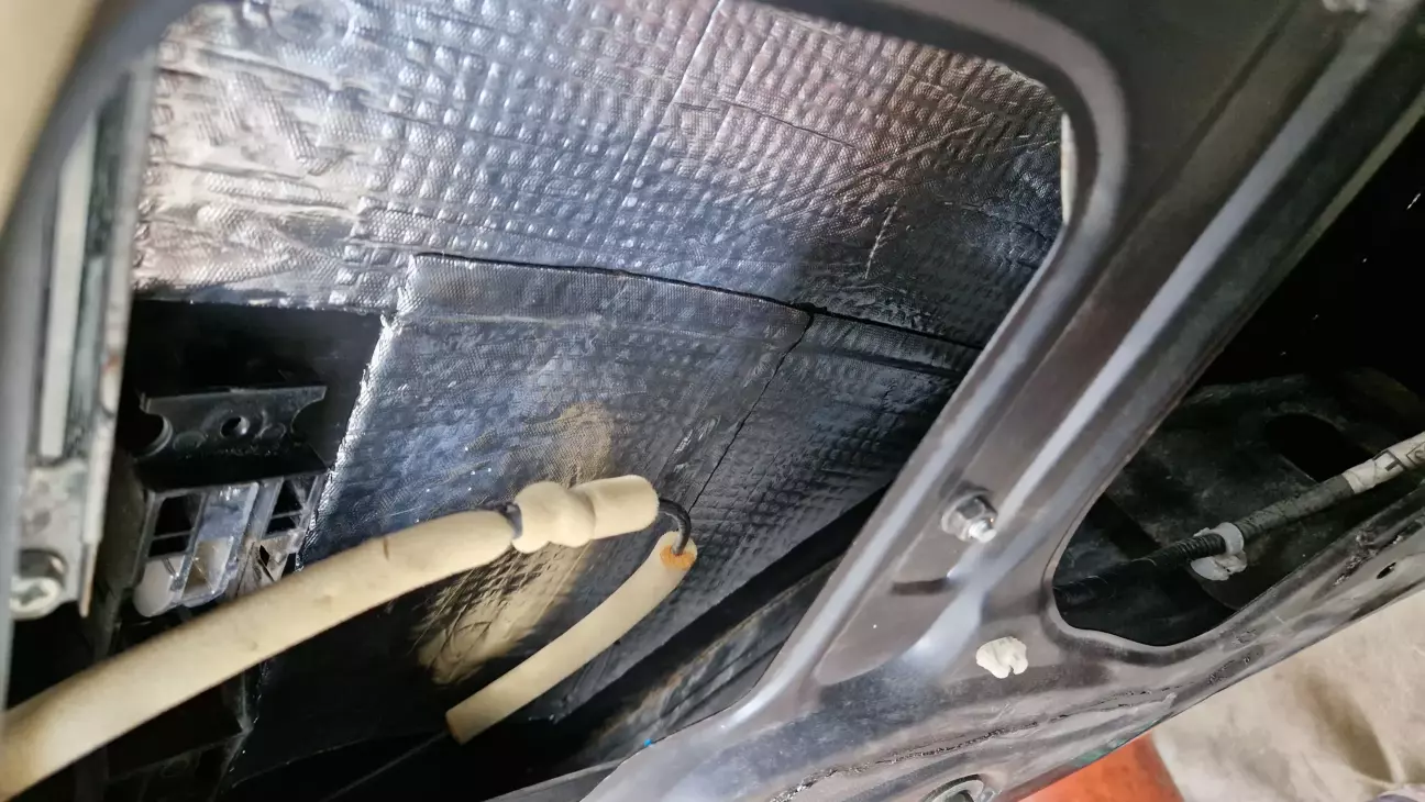 Ні для кого не секрет що у роуга двері дзвінкі як консервна банка, коли закриваєш авто то навіть чутно легкий дзвін. Рішення просте, шумо-віброізоляція (далі ШВІ) дверей, взяв в епіцентрі вібру 2мм і каучукову шумку 10мм, приємно було працювати з дверями роуга, багато вільного доступу і так, я був перший хто знімав дверні карти. Всі дверки обклеяні в середині, мовілю в аейрозолі заодно пролив низ дверей аби як двері служижили роками і не підавались корозії.