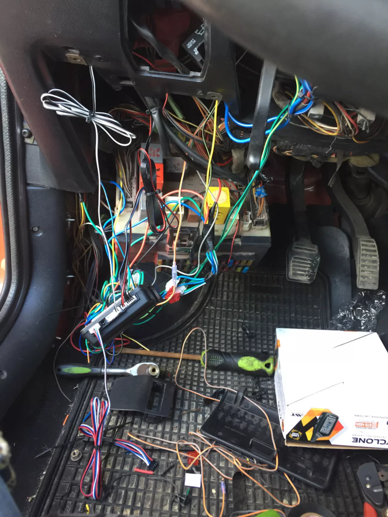 Но разобравшись что куда и как в сигнализации, нам нужно было найти как подружить китайскую сигналку и штатный центральный замок Форда. В итоге промчавшись часов 8-9 с перекурами, мы это сделали))