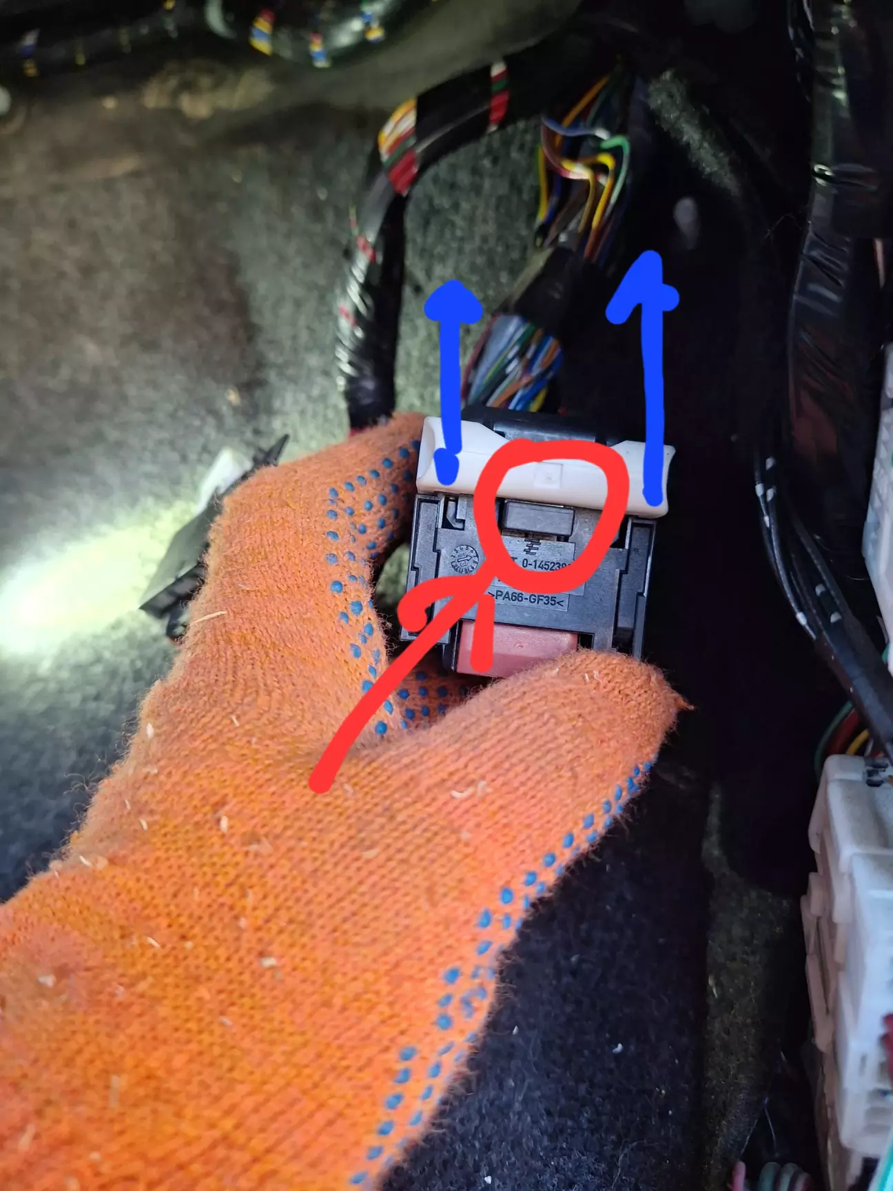 Як пишуть інші, треба відкрутити два болта на 10 і зняти блок разом із рамкою. Але спочатку знімаємо фішки з роз'ємів. Ось тут, якщо дуже багато дурі та фантазії можна зробити собі біду. Фішка сама знімається досить легко, але спочатку треба натиснути на фіксатор, а потім ЛЕГЕНЬКО рухом вниз опустити білий флажок і вуаля, фішка вийшла з роз'єму.