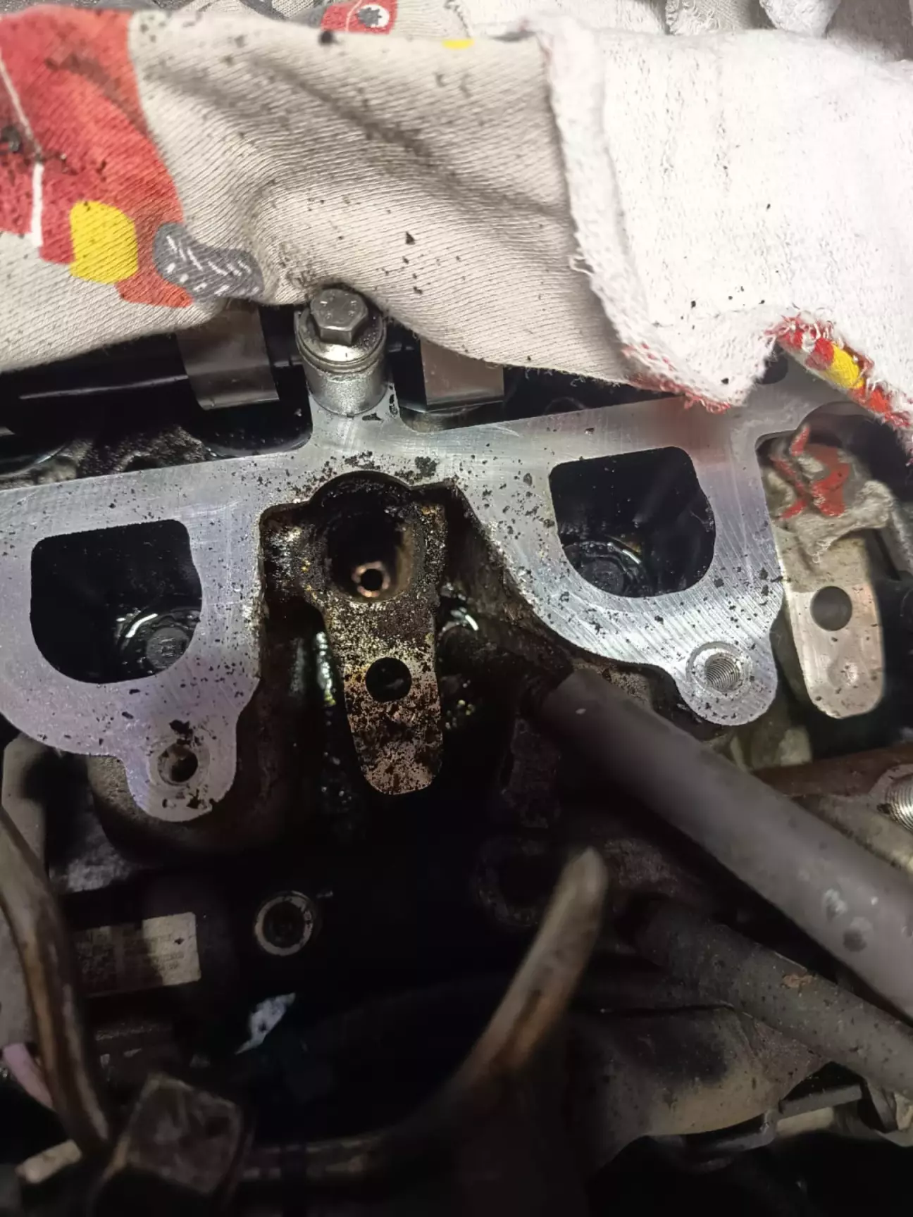 Але кришку зняти по легкому не вийшло. Заважали пєзіки форсунок. Прийшлося хоть і не хотілося туди лізти до форсунок і їх витягати. Дві форси вийшли добре, а решта дві ну ніяк не хотіли на світ божий. Майстер ( майстер не з СТО, а знайомий що думав що він майстер на всі руки ) помучавшись деньок вирішив зняти з цих форс що прикіпіли пєзіки, щоб витягти клапанну кришку.
