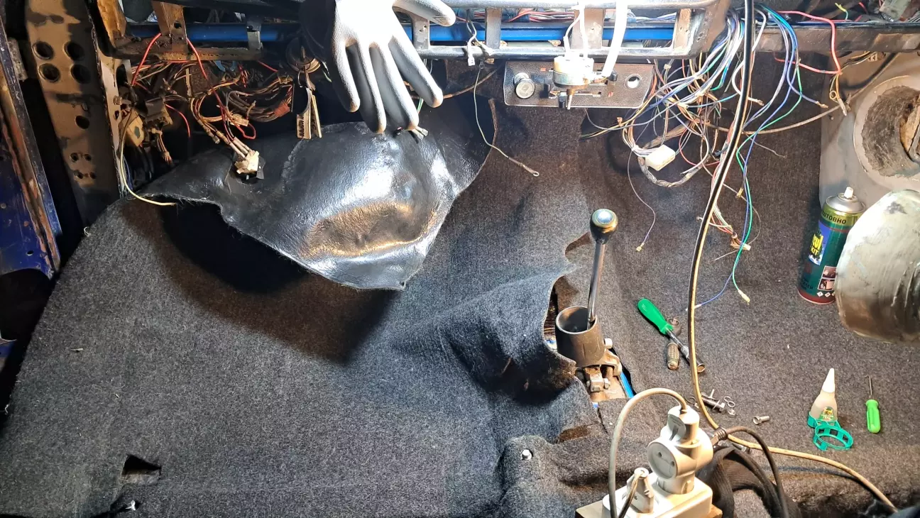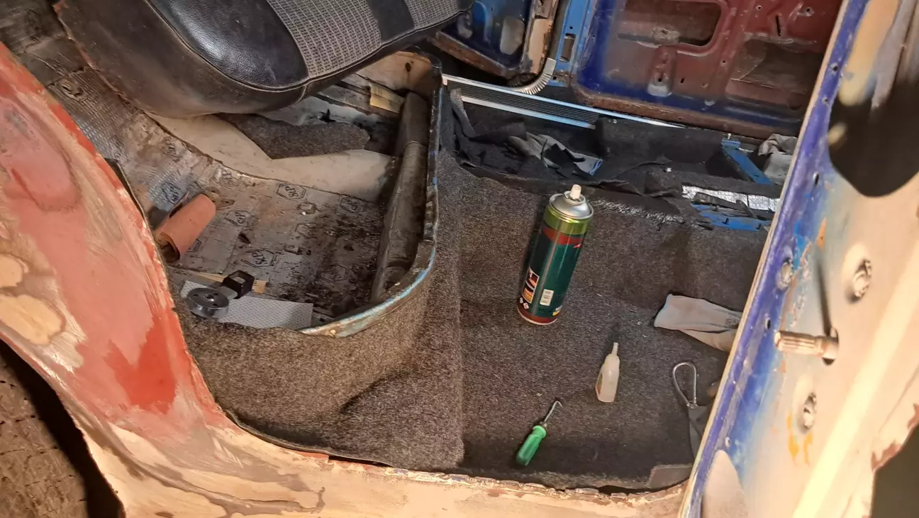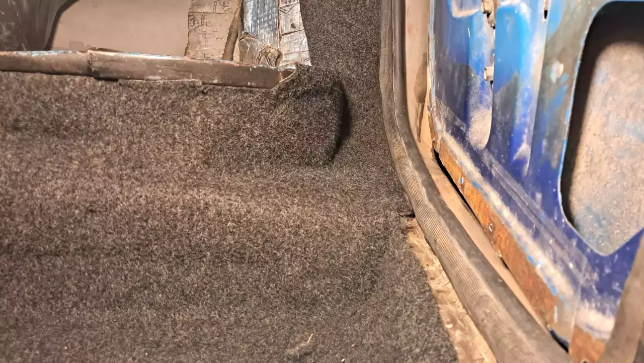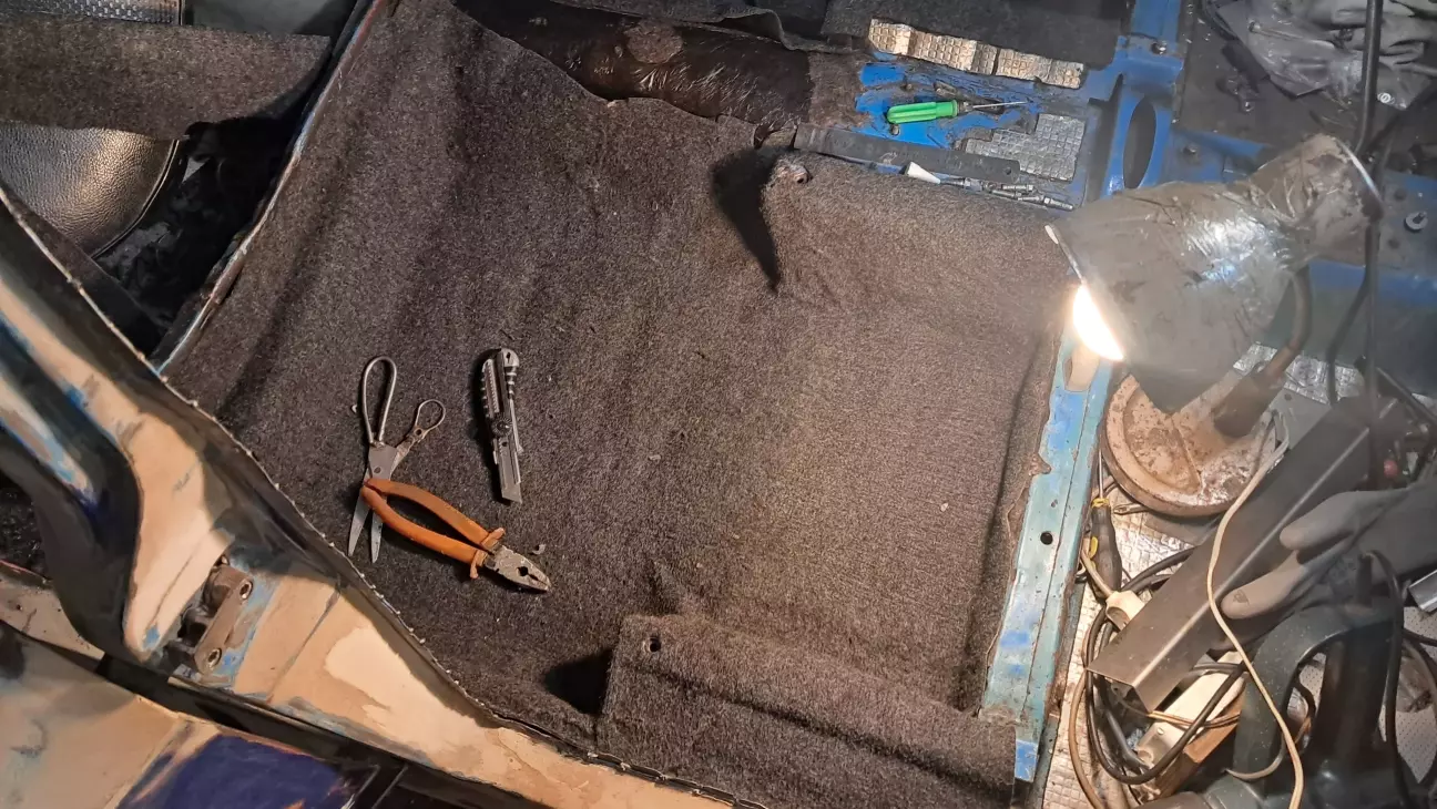 За основу взято сучасного виробництва ковролін чорно-сірого з жигулі класики,воно типу прорезинене і водонепроникне.