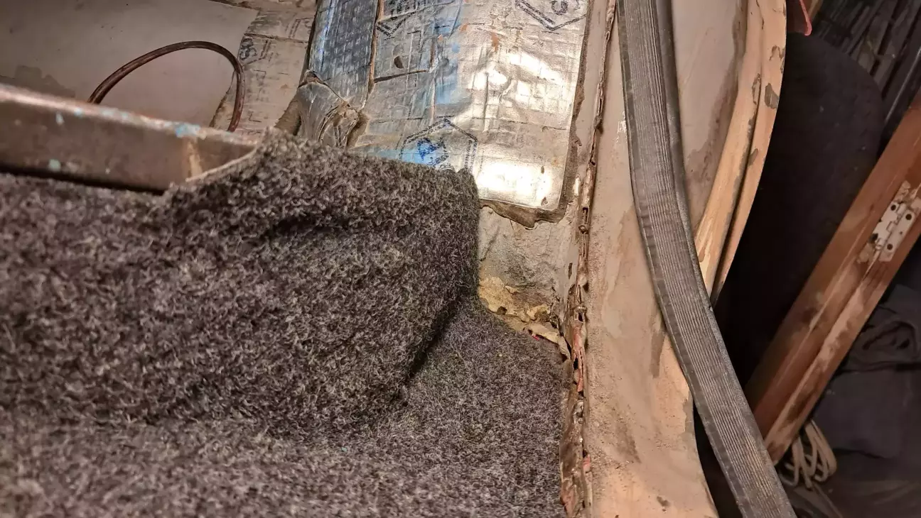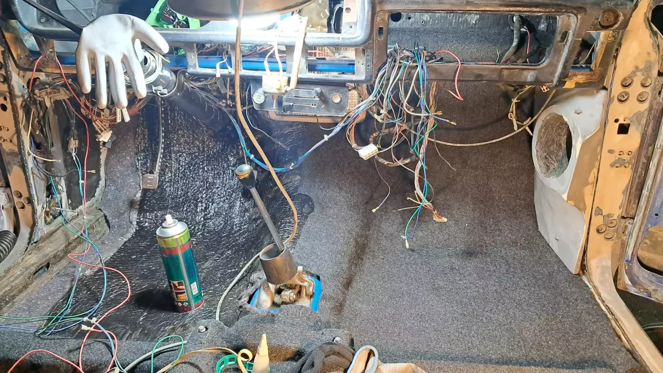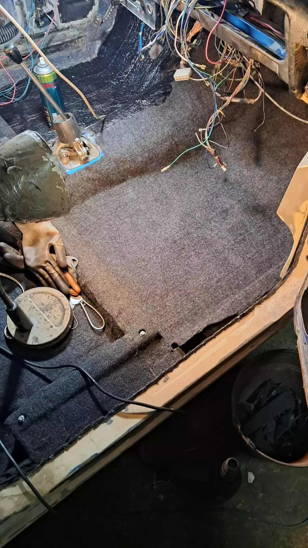 За основу взято сучасного виробництва ковролін чорно-сірого з жигулі класики,воно типу прорезинене і водонепроникне.