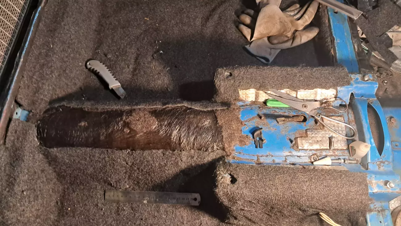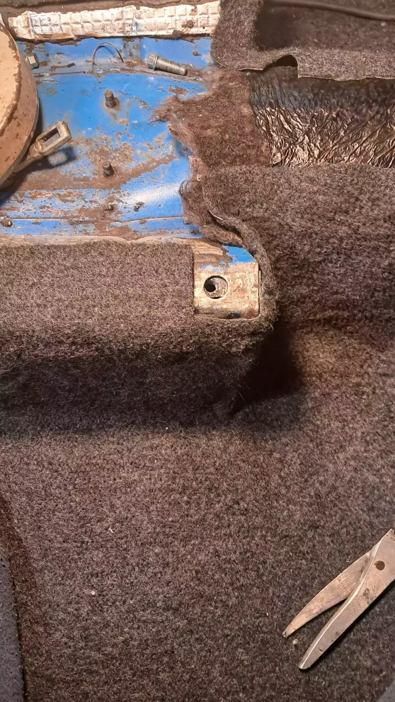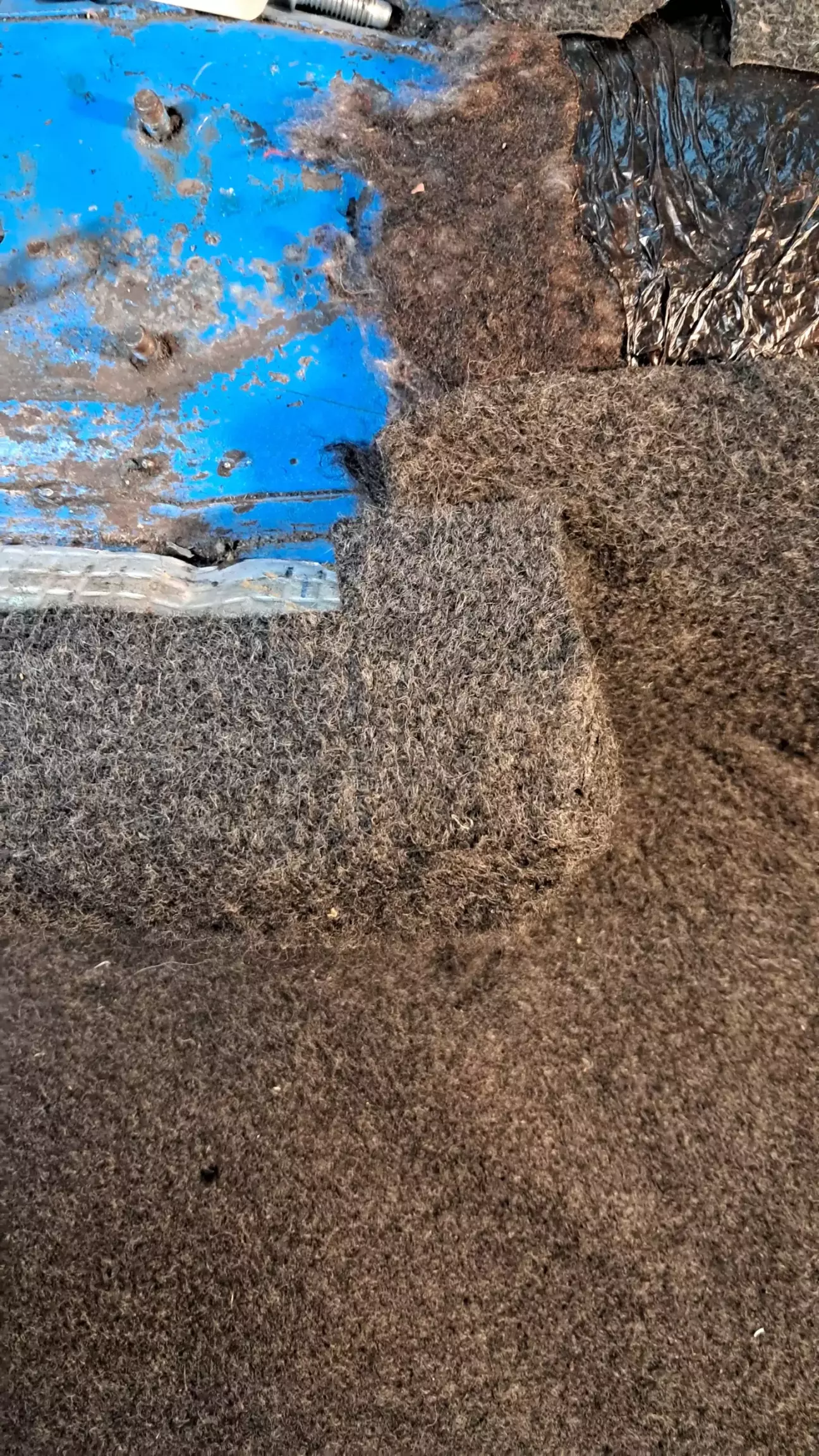 Як то робилось?-Знабилось приблизно 2 комплекта ковроліна,було куплено новий,і залишився старий на доклейку шматків-точно непомню може це я два купляв?-непомню.Розрізаєм на 2 стандартних куска на 4 частини-потім брався фен грілося і тянулося,грілося і тянулося і так багато разів,оказалось шо його можна прям нормально так розтягувать.Прям весь,весь цільний без вклеювання якихось шматків явно необійтись,для цього використовувавсь старий.