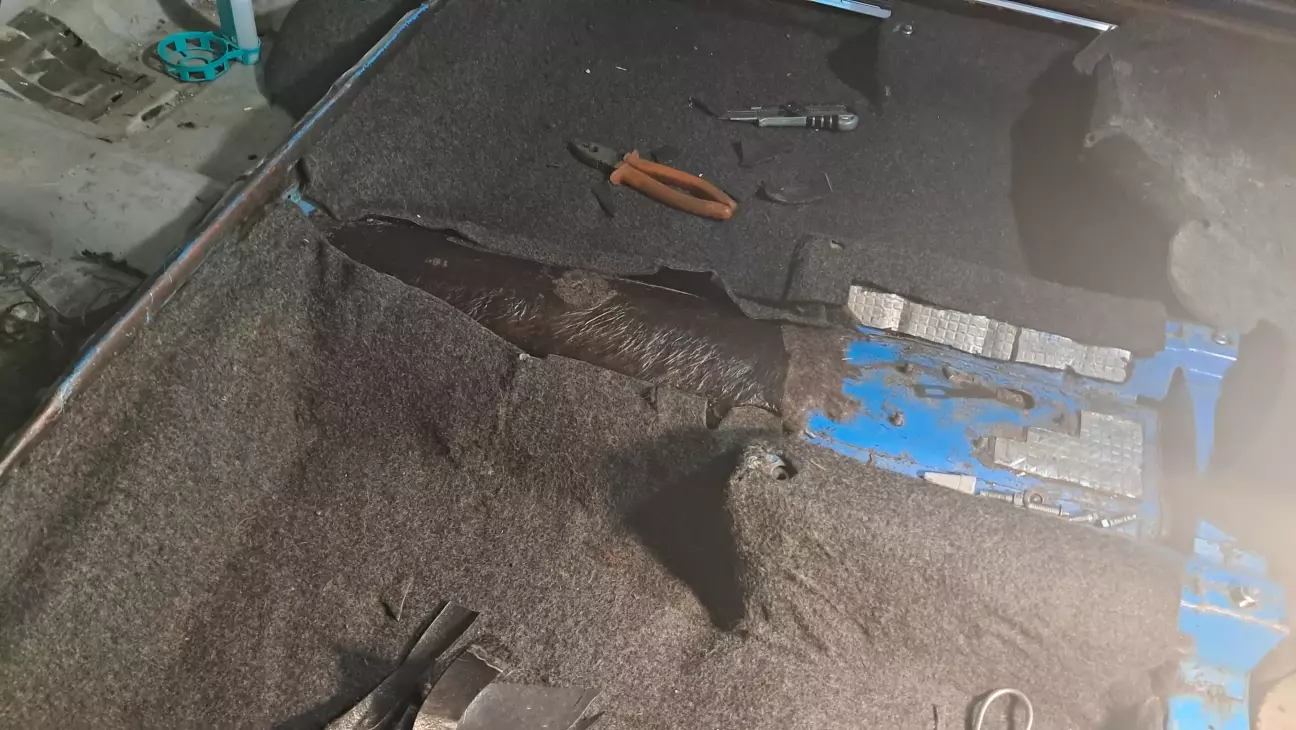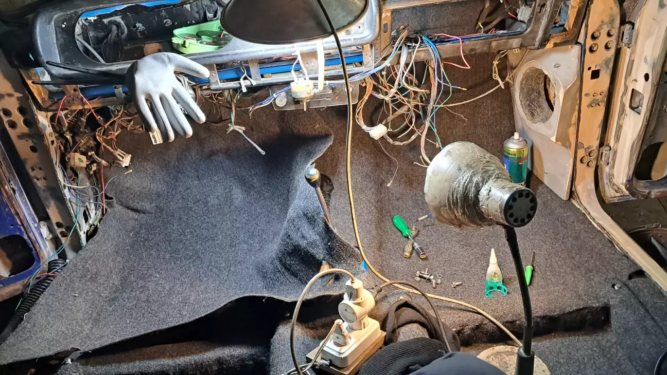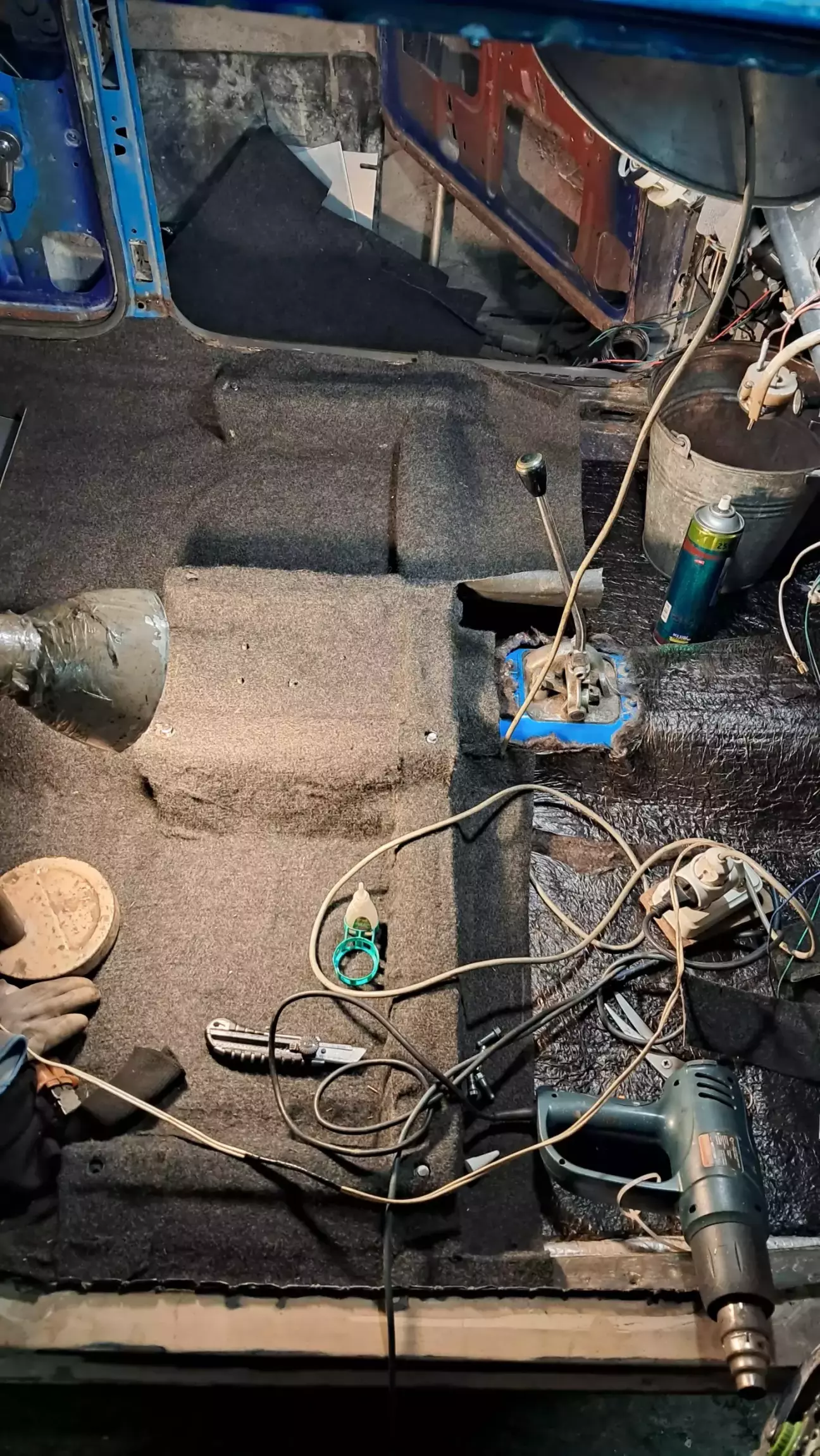 Як то робилось?-Знабилось приблизно 2 комплекта ковроліна,було куплено новий,і залишився старий на доклейку шматків-точно непомню може це я два купляв?-непомню.Розрізаєм на 2 стандартних куска на 4 частини-потім брався фен грілося і тянулося,грілося і тянулося і так багато разів,оказалось шо його можна прям нормально так розтягувать.Прям весь,весь цільний без вклеювання якихось шматків явно необійтись,для цього використовувавсь старий.