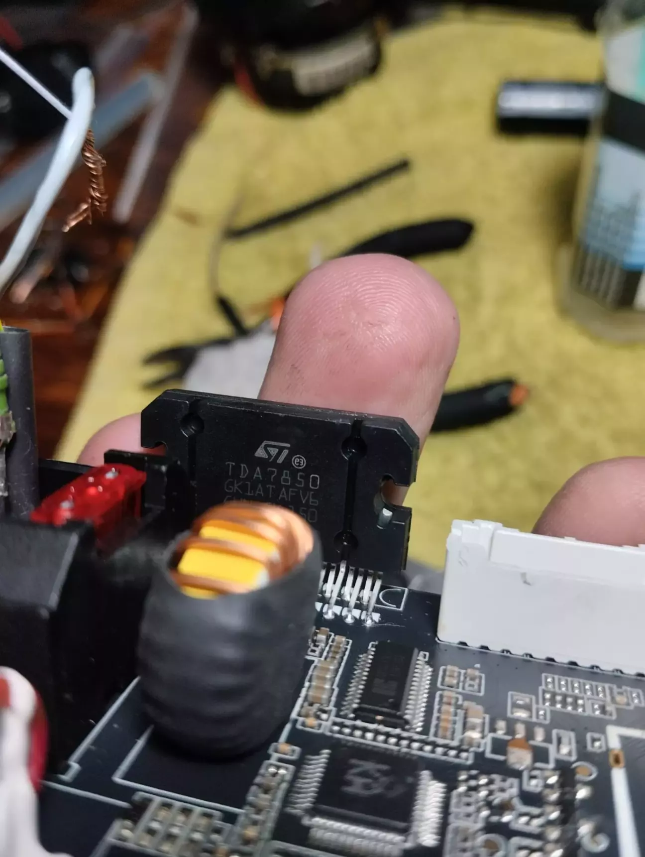 Встановлено мікросхема TDA7850, додатковий кулер та конденсатор. Хто ще не наважився на таке покращення, не гайте час. Відправив ввечері магнітолу, через дві доби отримав назад.