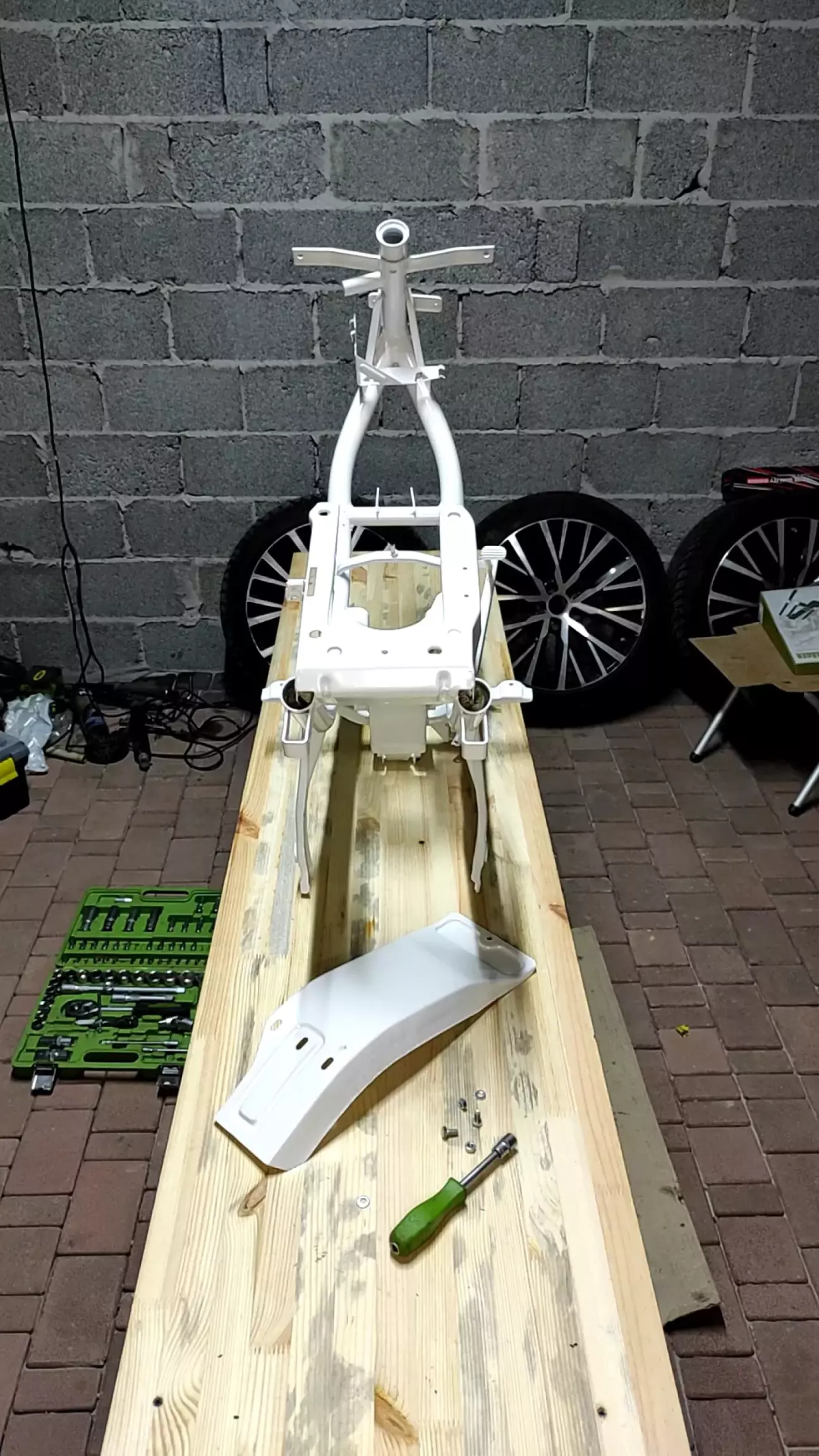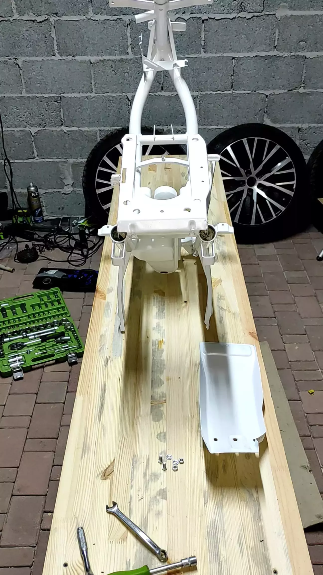 На днях віддав на порошкове покриття раму, кермо, бак, бризговик.