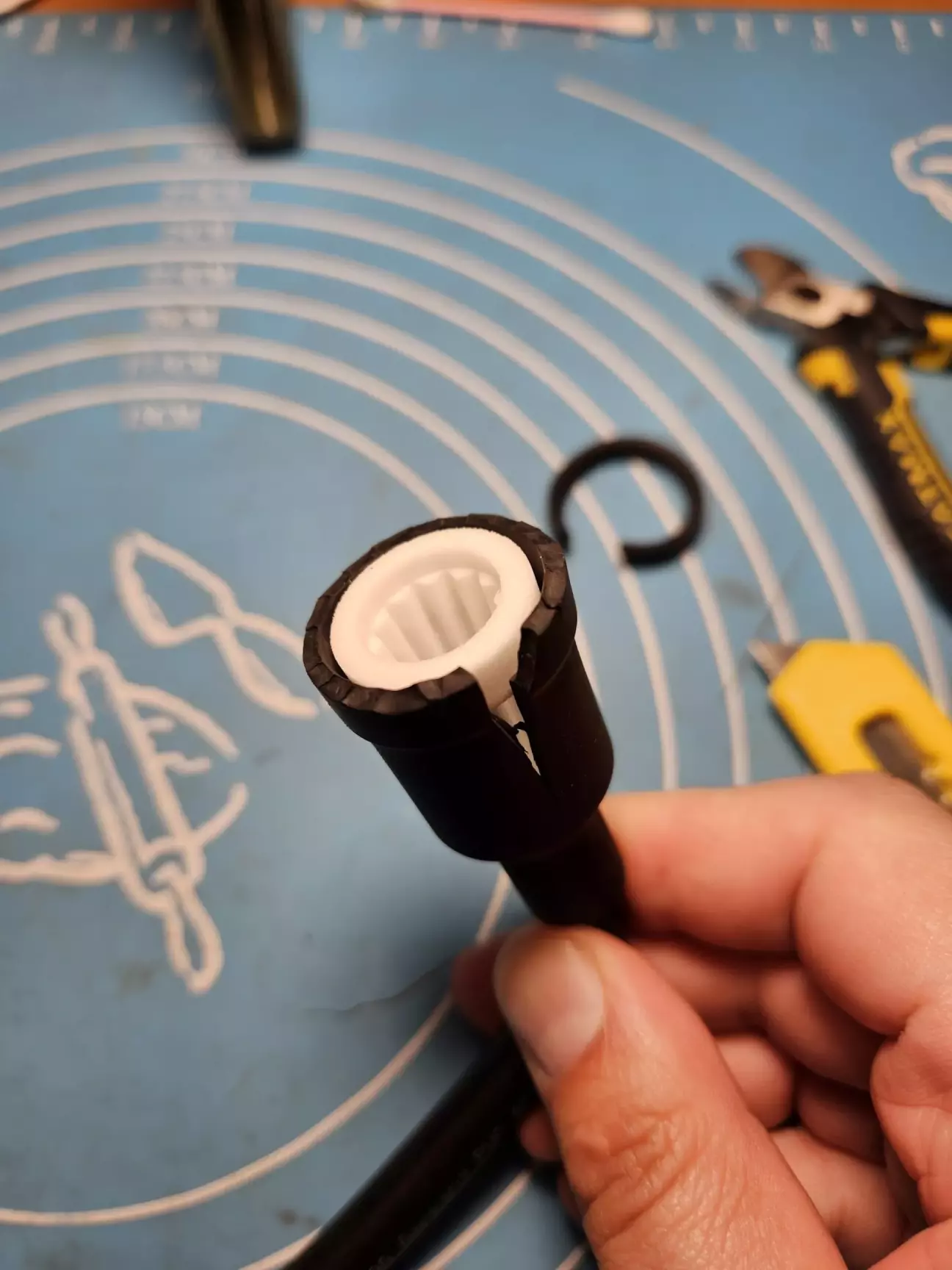 На майбутнє можна придумати якийсь варіант з 3D-друком цієї фільтруючої вставки, типу холдер для фільтруючого елементу скажімо з шматка повітряного фільтру від чогось іншого.