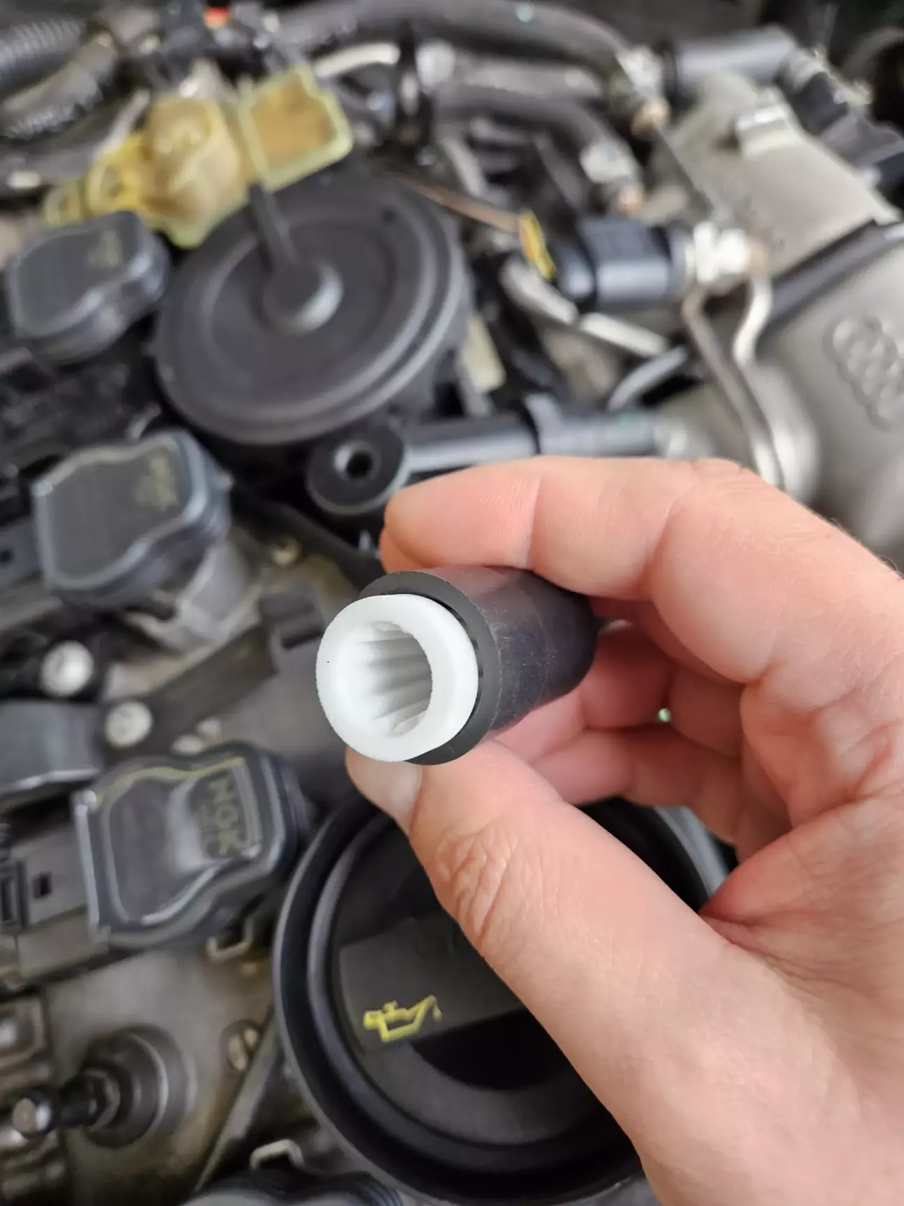 Трохи менше двох років тому я вже міняв (!) цю дихалку (06H 133 583 B), бо фільтрік на її кінці розсипався.