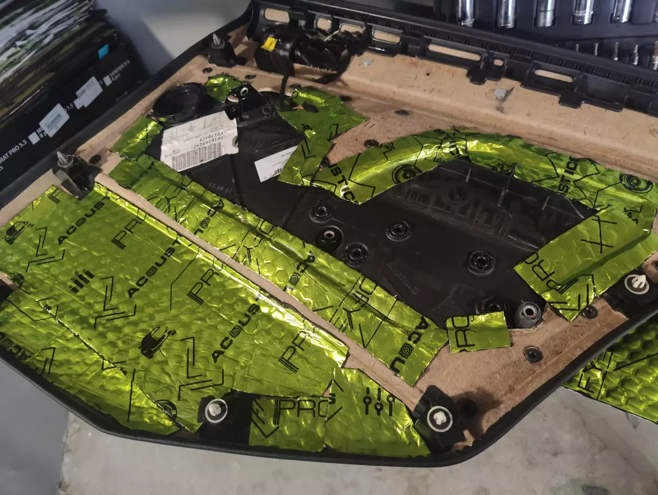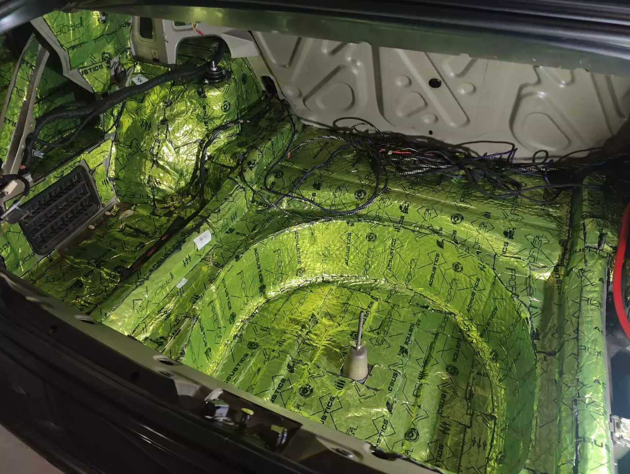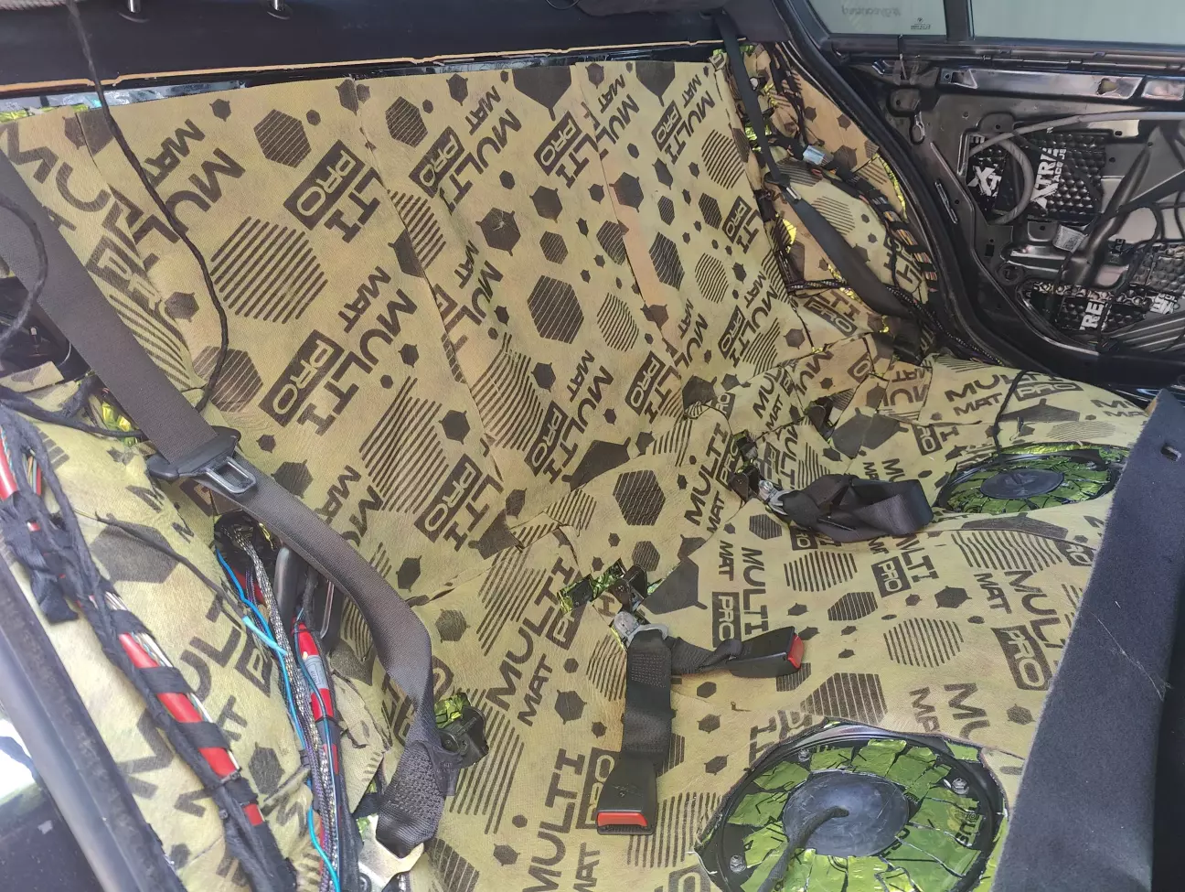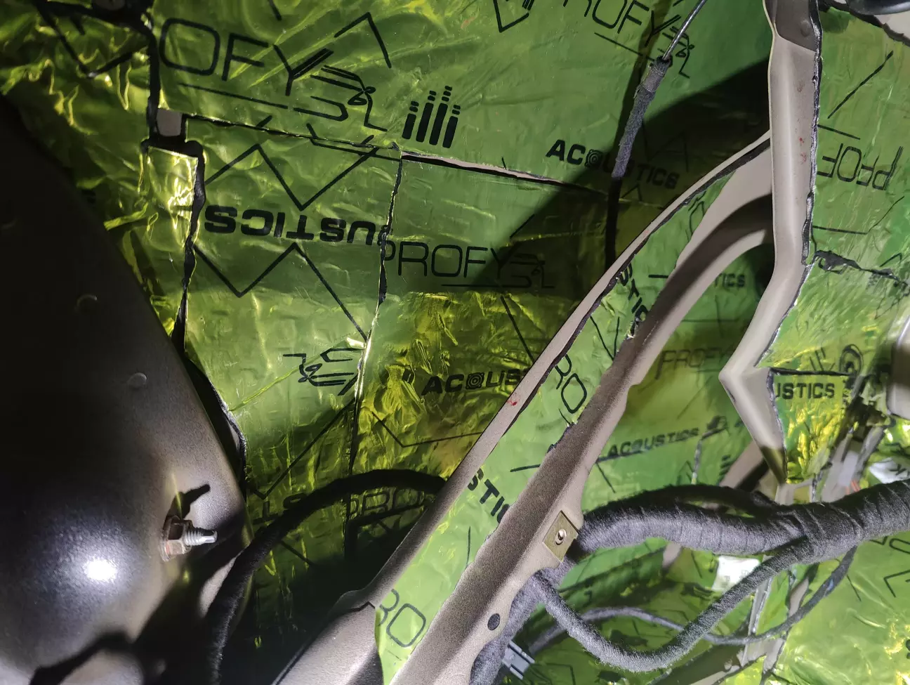 Привіт. Прийшла черга базової аудіопідготовки кузову. Того літа я зробив ШВІ тільки передніх дверей - результат є, але вимагається більше. Це звісно ніколи не дає гробову тишу, як в умовних Rolls Royce (хто вивчав як зібрані ті машини, думаю зрозуміє, що не в шумці і вібрі основний твіст, бо шумоізоляційних матеріалів там досить мало). Багато людей заявляють, що якість аудіосистеми відчутна лише коли ти слухаєш музику на заглушену. Що ж, на мою скромну думку, гарна шумоізоляція салону робить так, що і при їзді відчуваєш, за що були заплачені гроші. Те, що під час руху змінюється баланс частот в ту чи іншу сторону, корелюється тонкомпенсацією в будь якому достойному DSP, при такій необхідності.