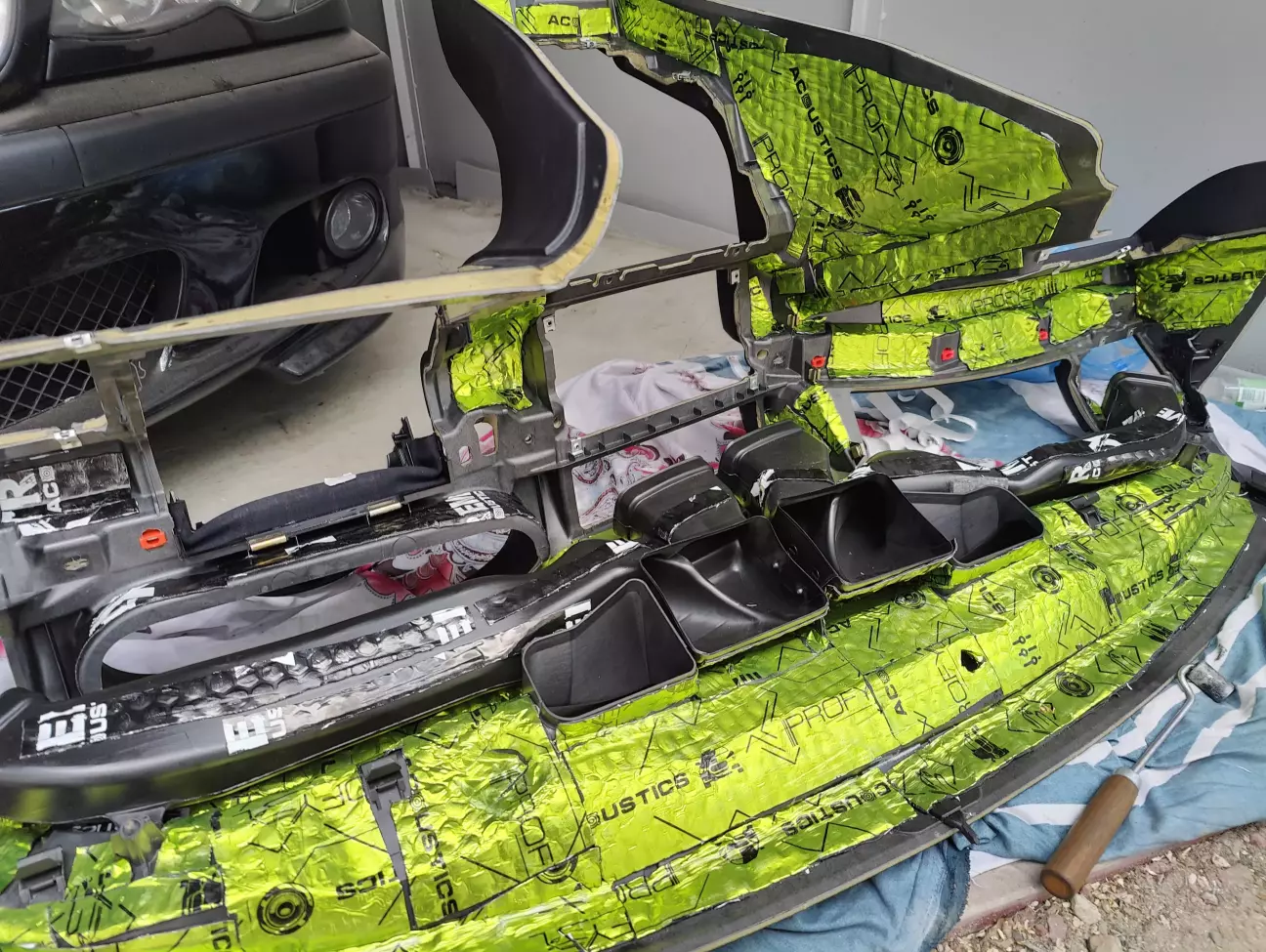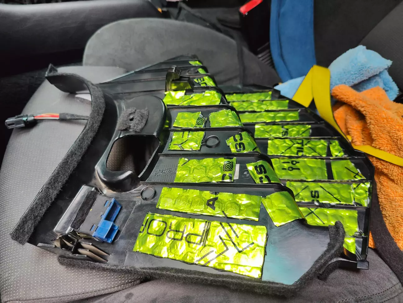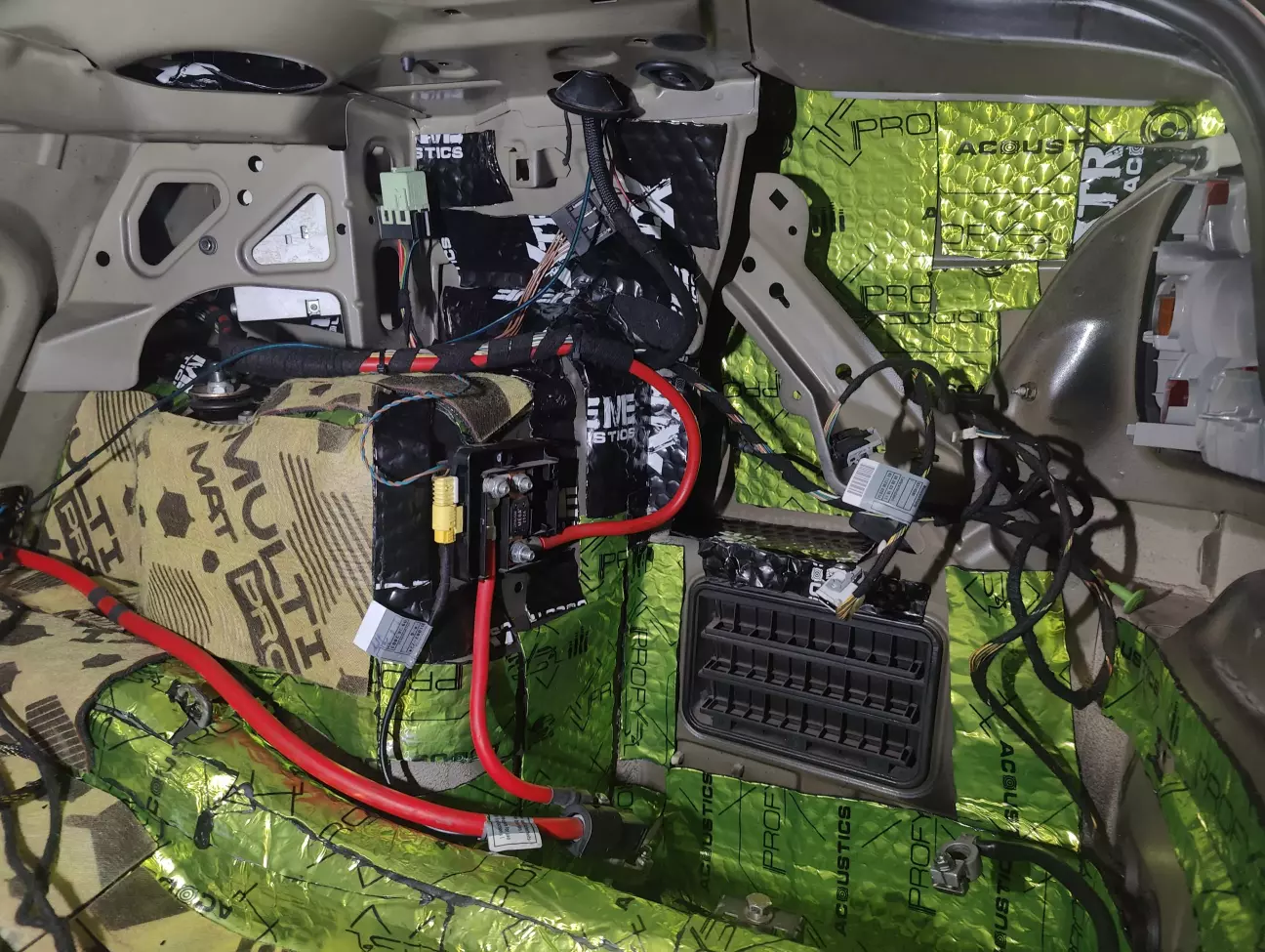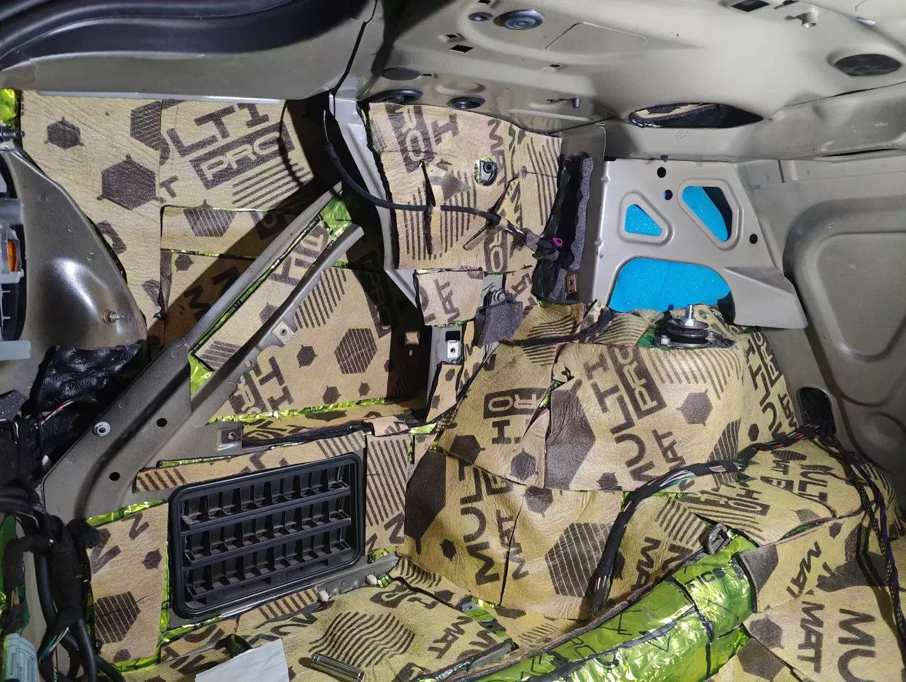 Привіт. Прийшла черга базової аудіопідготовки кузову. Того літа я зробив ШВІ тільки передніх дверей - результат є, але вимагається більше. Це звісно ніколи не дає гробову тишу, як в умовних Rolls Royce (хто вивчав як зібрані ті машини, думаю зрозуміє, що не в шумці і вібрі основний твіст, бо шумоізоляційних матеріалів там досить мало). Багато людей заявляють, що якість аудіосистеми відчутна лише коли ти слухаєш музику на заглушену. Що ж, на мою скромну думку, гарна шумоізоляція салону робить так, що і при їзді відчуваєш, за що були заплачені гроші. Те, що під час руху змінюється баланс частот в ту чи іншу сторону, корелюється тонкомпенсацією в будь якому достойному DSP, при такій необхідності.