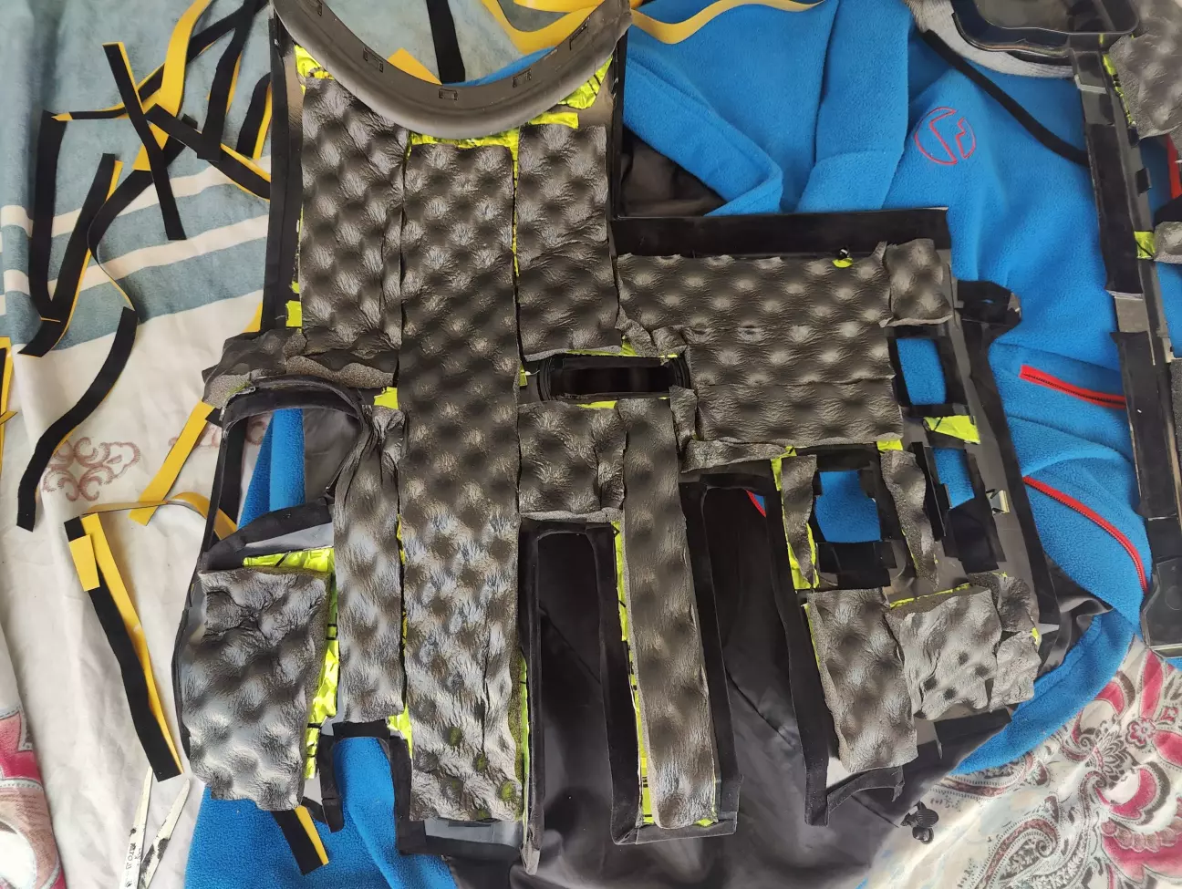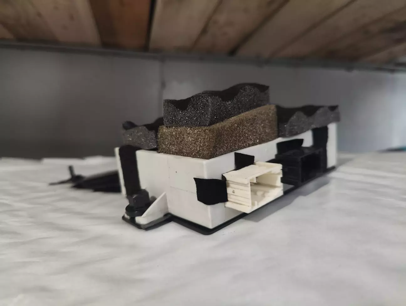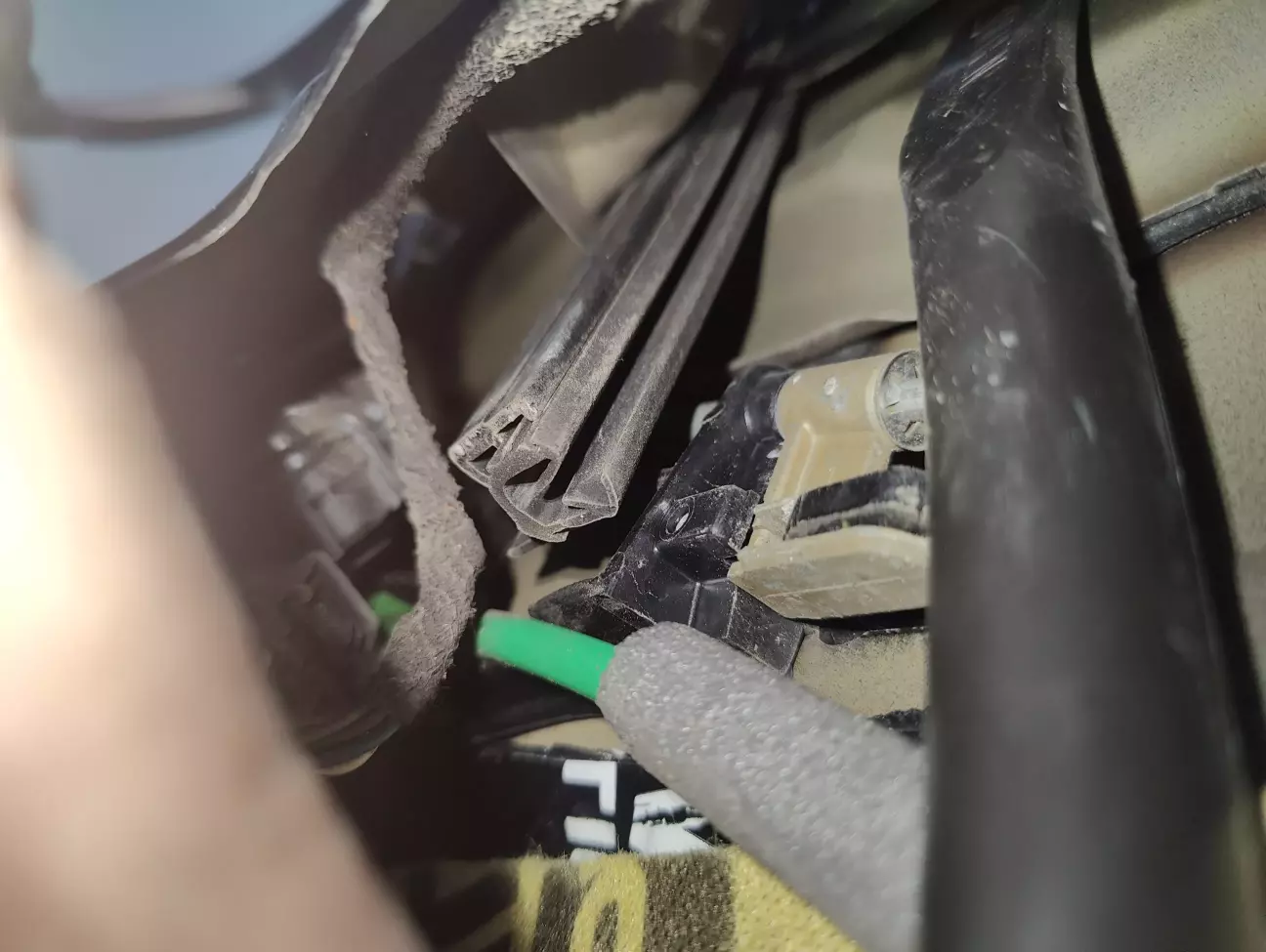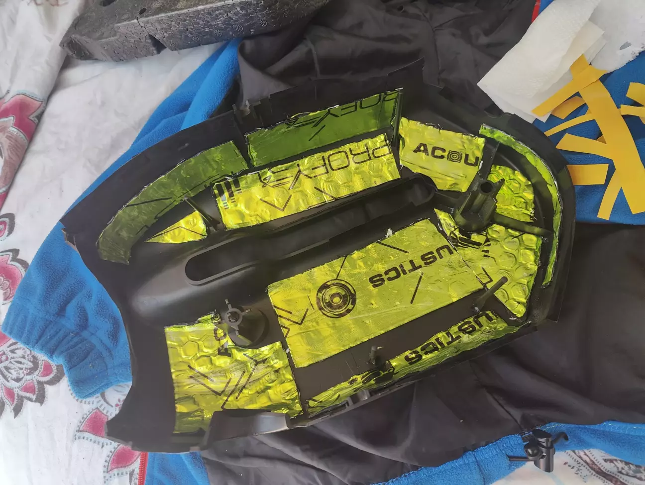 Щоб йому було тепліше і по домашньому, закатав аналогічно. Оскільки мій акумулятор нижче заводського, додав 2 слої сендвіча, щоб він притискався щільніше. Антискрип і тут скрізь де знайшлось йому місце: на кришці запобіжника, на захисному пластику тощо. Всю проводку зафіксував як можна міцніше.