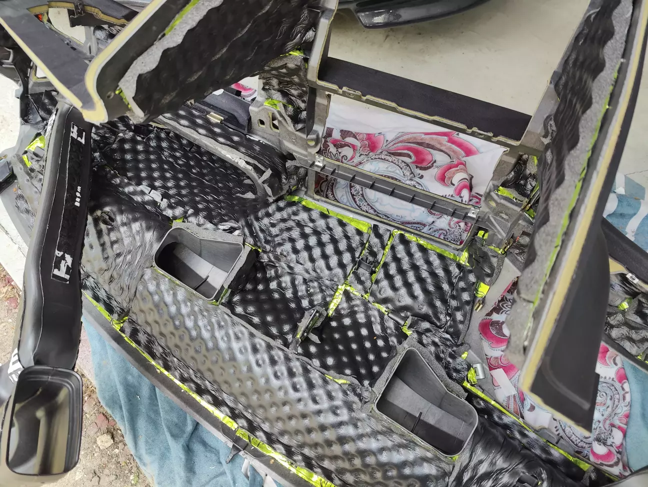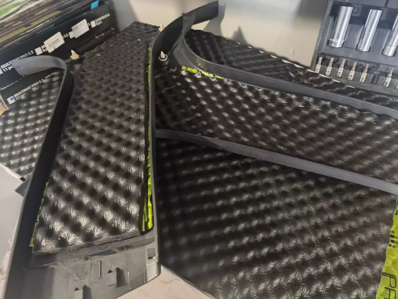 Ну і придбав необхідні матеріали, здебільшого від Acoustics. Листи віброізоляції Profy та Xtreme різної товщини - 2, 3 та 4 мм, підібрані під конкретні ділянки. Додатково взяв спеціальні блоки, які стискаються й дозволяють заповнювати порожнини. Як базовий шар для шумоізоляції, включно з дверима, взяв сендвіч CTK Multimat Pro. Чудовий матеріал був колись, але, нажаль, те, що мені приїхало було гіршим по якості ніж в попередній раз, зовнішній слой розпадався, був виразний не дуже приємний запах. Вочевидь, удешевляють виробництво – нікому не рекомендую це діло купувати, поки вони щось не поліпшать (пройшло півроку з дати покупки, якість його все ще така ж сумнівна, судячи з того що я знаю). Окремо хочу подякувати Володимиру за консультації щодо вибору товщини та потрібної кількості. Його досвід був безцінний. Додатково були використані кілька листів Soundwave PU та тонший Soundline. Як на мене, це максимально бюджетний допустимий варіант обробки кузову. Можна ще дешевше, але тоді й результат значно гірший, а подібний набір матеріалів уже дає якесь розуміння, що може дати гарна шумоізоляція кузову. Хоч і не абсолютний та ідеальний.