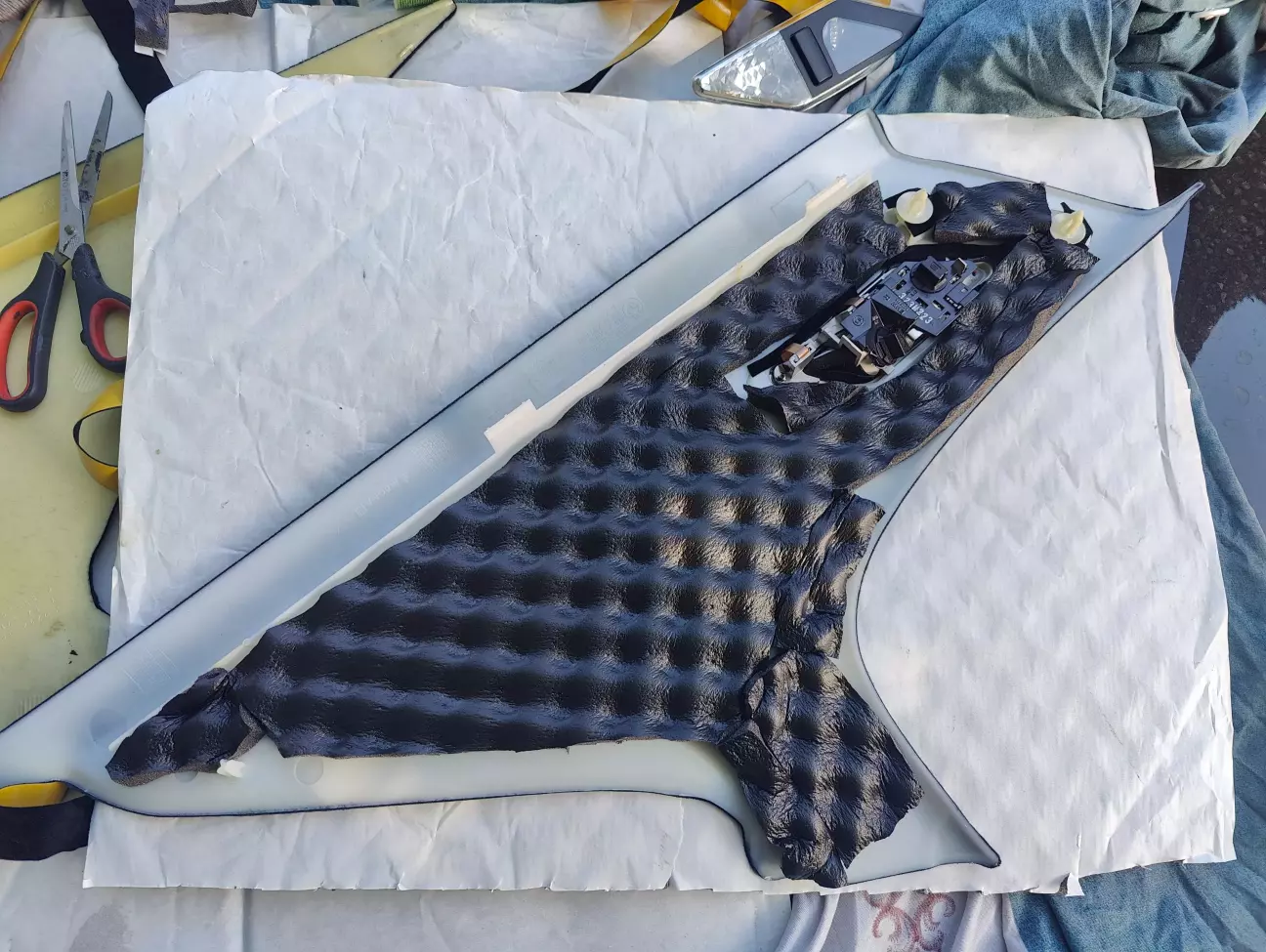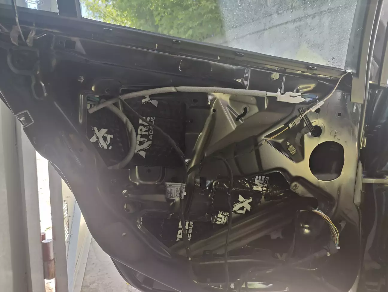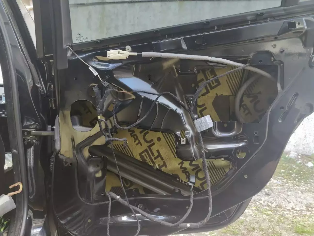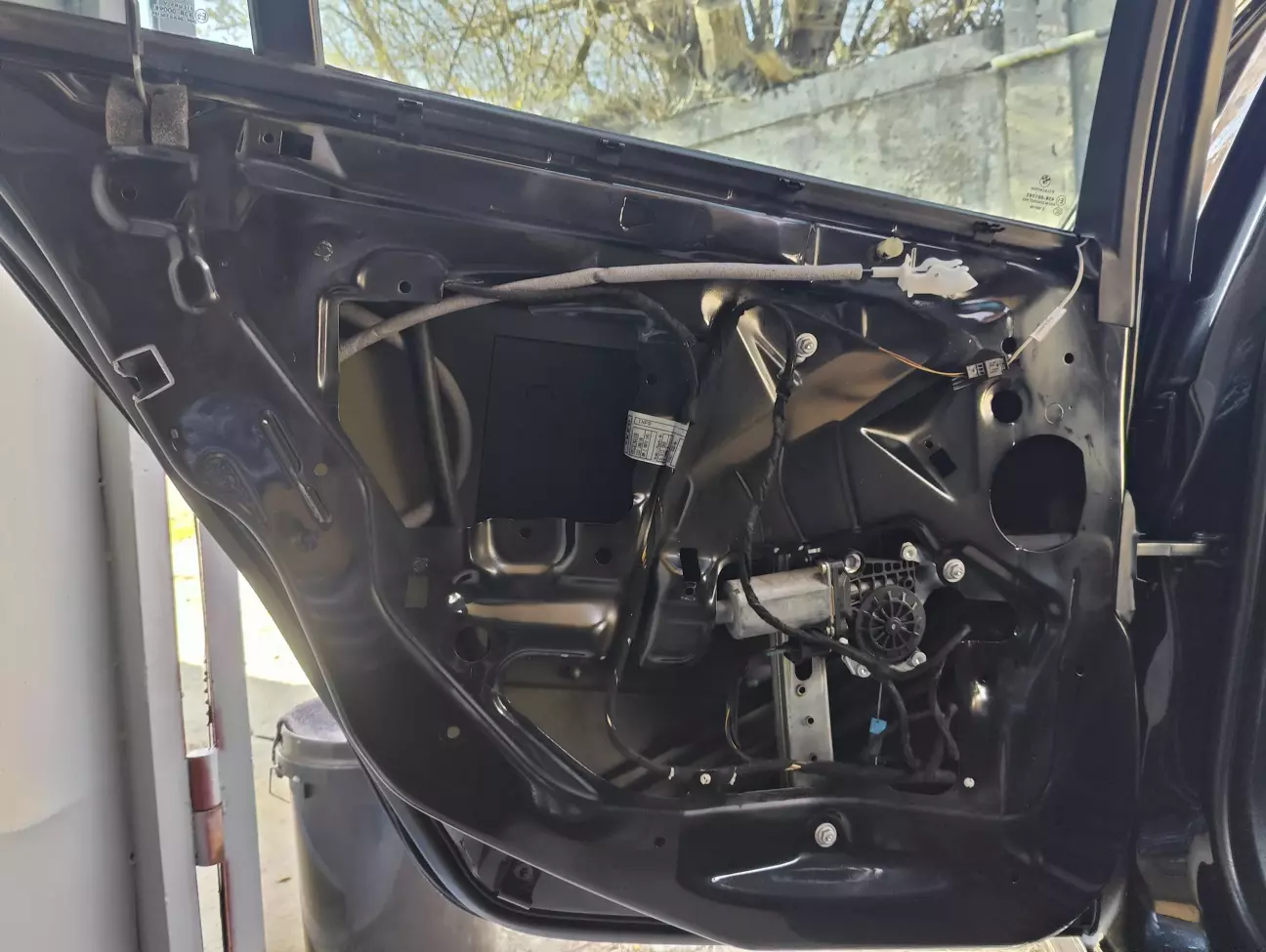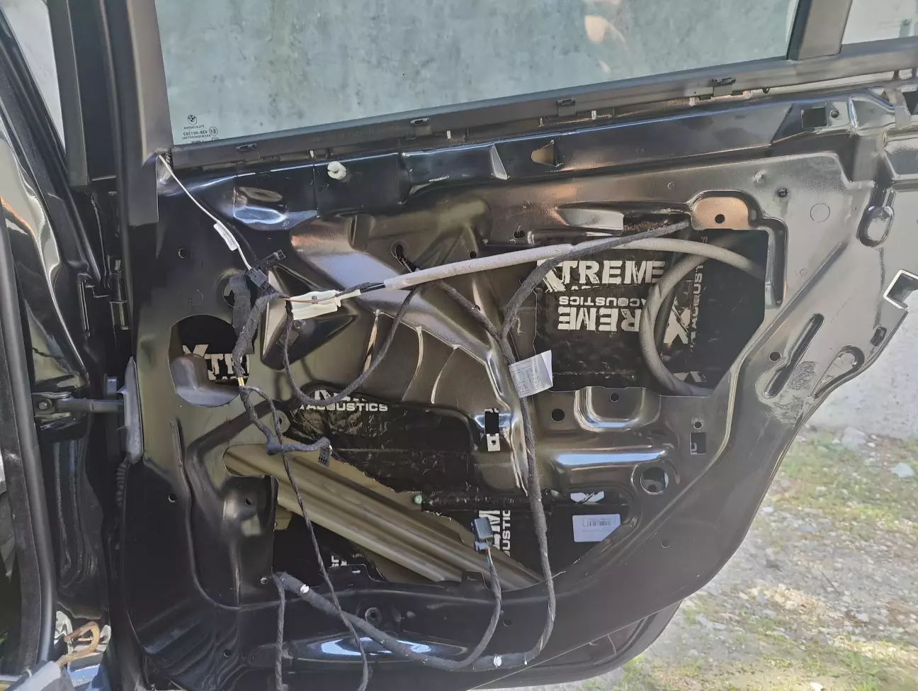 Поки робив інстал передніх дверей, каретку виломало в передньому ЕСП, хоч вона й була вже замінена не так давно. Прийшлось вскрити всю вібру, зняти, вирішити, поклеїти заново, зафіксувати на цей раз проводку правильно під віброю, але то таке. Буває. Разом оцінив наскільки складно зідрати і відмити вібру від дверей - досить складно і довго. Ну і прийшлось її звісно замінити на нову.
