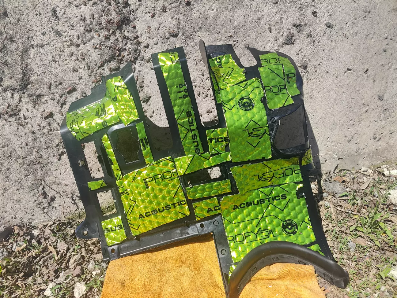 Загальна вага матеріалів що я купував була в районі 70 кілограм за все разом. Усі листи віброізоляції та багатошарової шумоізоляції вказані вище розміром 370×500 мм. Можливо, ці цифри стануть у пригоді тим, хто захоче обробити тільки певні ділянки. Я б сказав, що найважливіші з них - двері, зовнішні колісні арки (які я ще не обробляв і не факт що буду) та пластик.