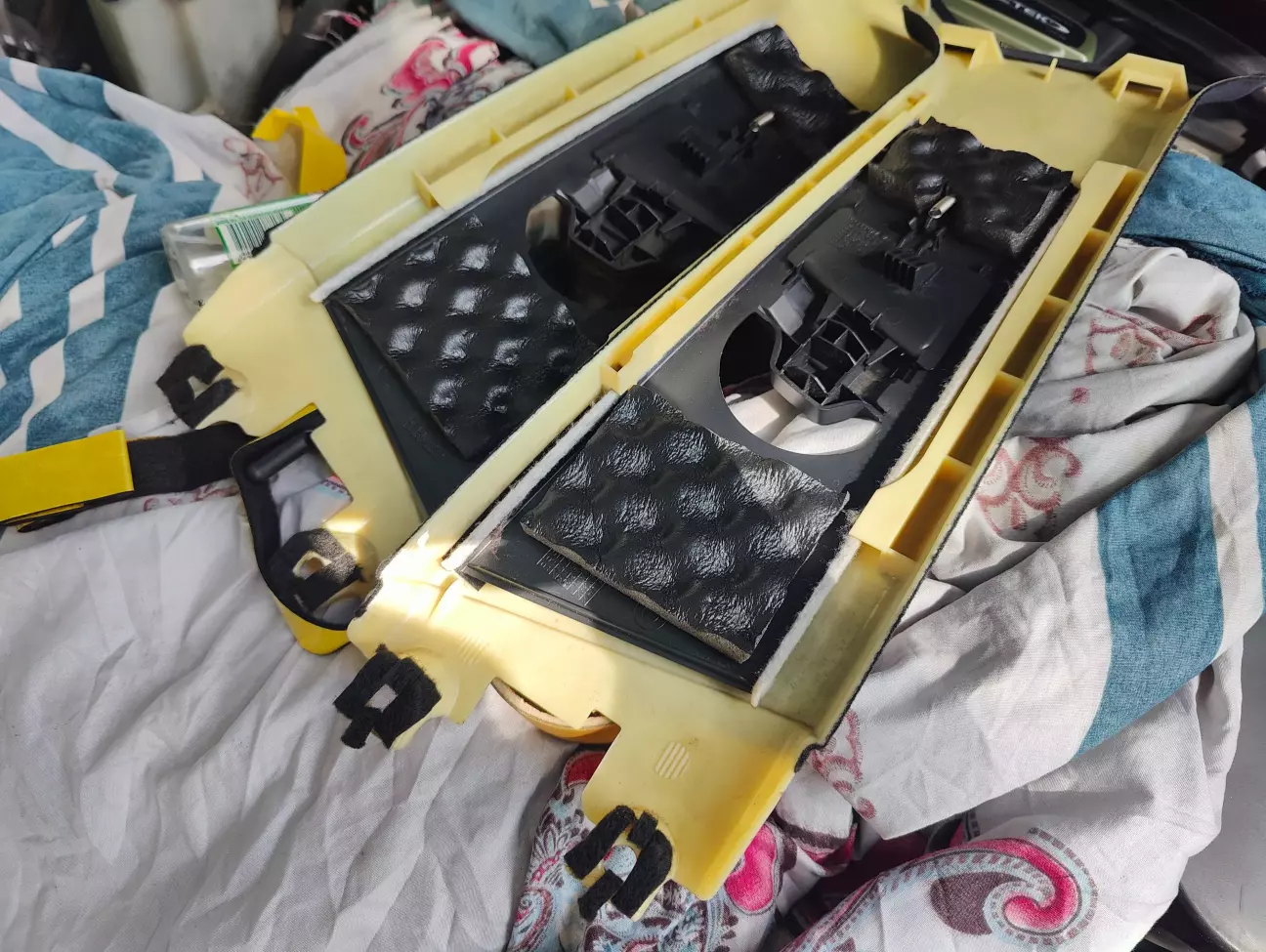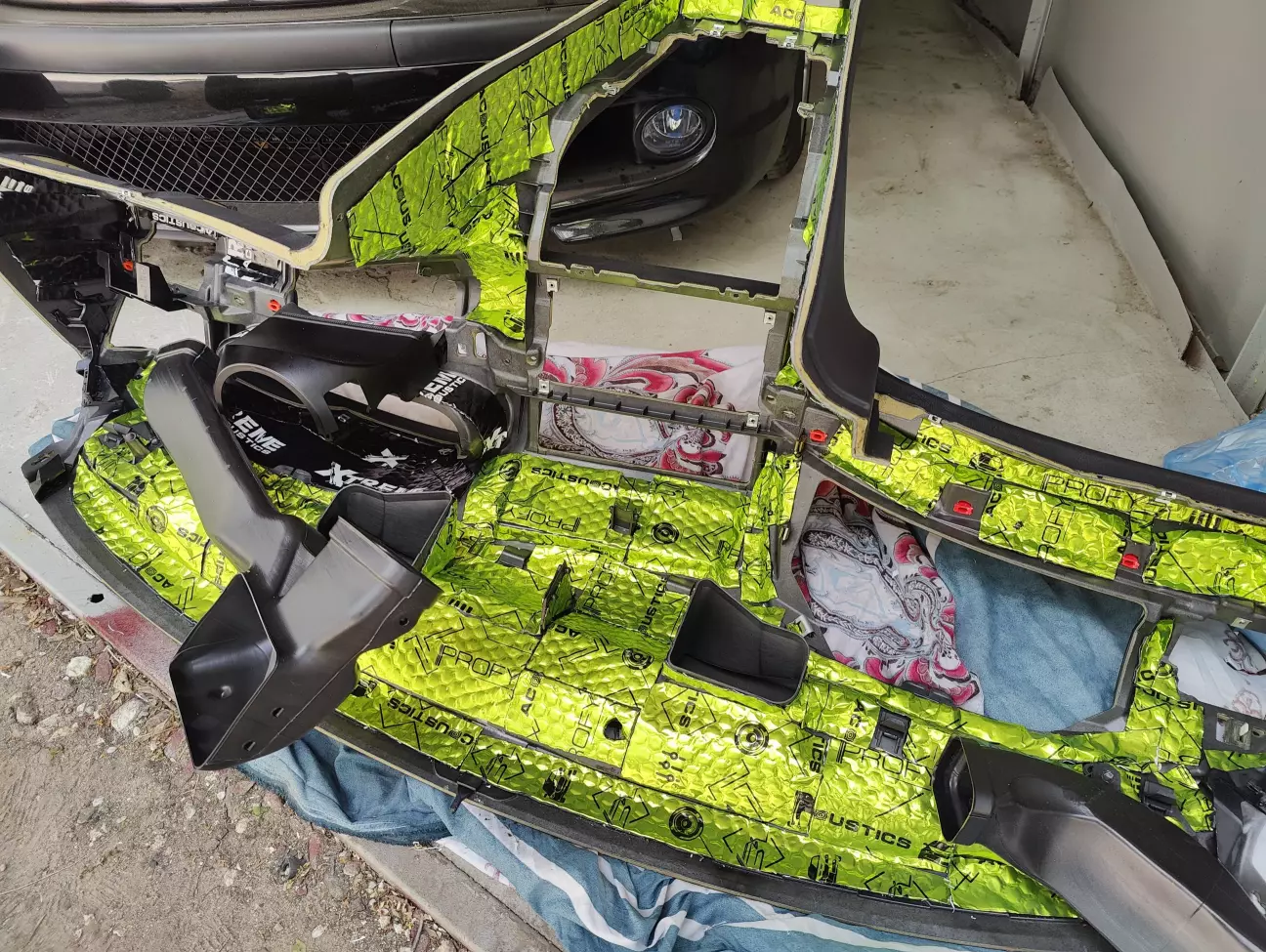 Антискрип тепер абсолютно скрізь, і в тому що я зверху показав, і в іншому на кшталт приборки, магнітоли, кришки подушки безпеки пасажира і тд, неважливо чи воно могло скрипіти в майбутньому чи ні, я хотів зробити все за один раз, щоб салон був дуже збитий по відчуттям. Деякі панели оброблені віброю і не сфоткав навіть, в гаражі якось було не до того, але думаю тут і так багато фото. Часу це все зайняло якусь неймовірну кількість, але мені поспішати не було куди – я вже скрізь і так запізнився.