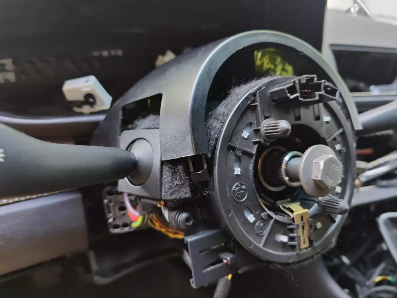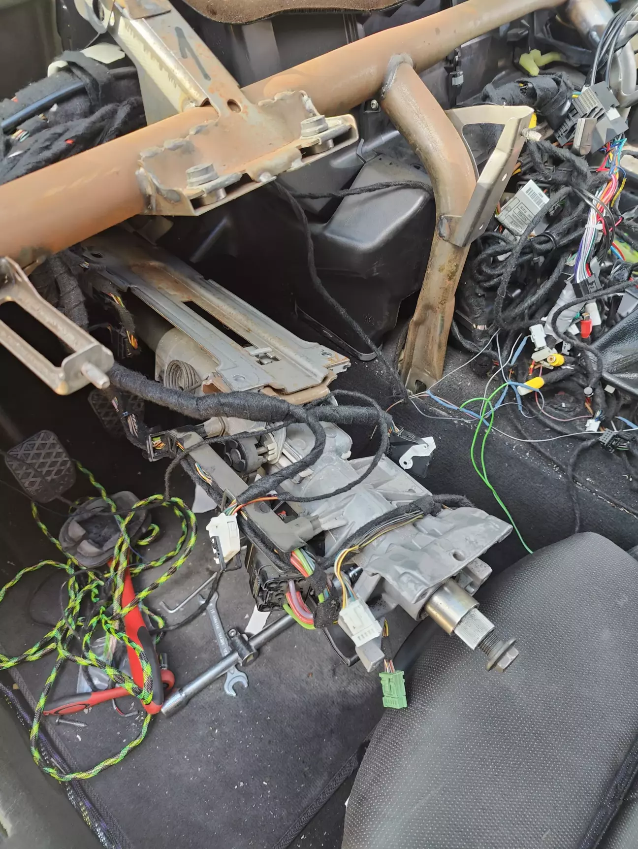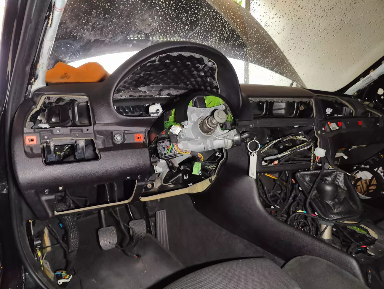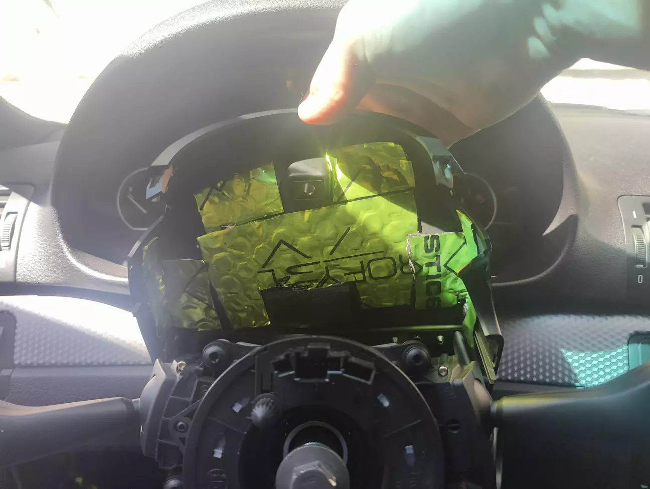 Коли зняв кермо, встановив та запінував перемикач з кнопкою інтенсиву для омивачу фар, що я відкладав уже рік. І перефарбував пластик на кермі, на цей раз з матовим лаком. Щоб воно не так хотіло царапатись.